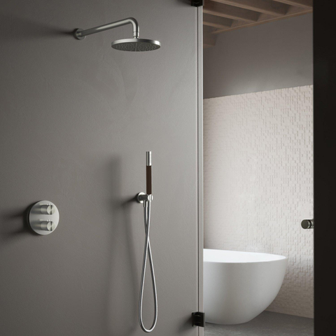 Hotbath Archie IBS30A Ensemble de douche encastré - complet - thermostatique - 2 fonctions - inverseur - bras mural 40cm - tête de douche ronde 20cm - douchette à main barre - inox