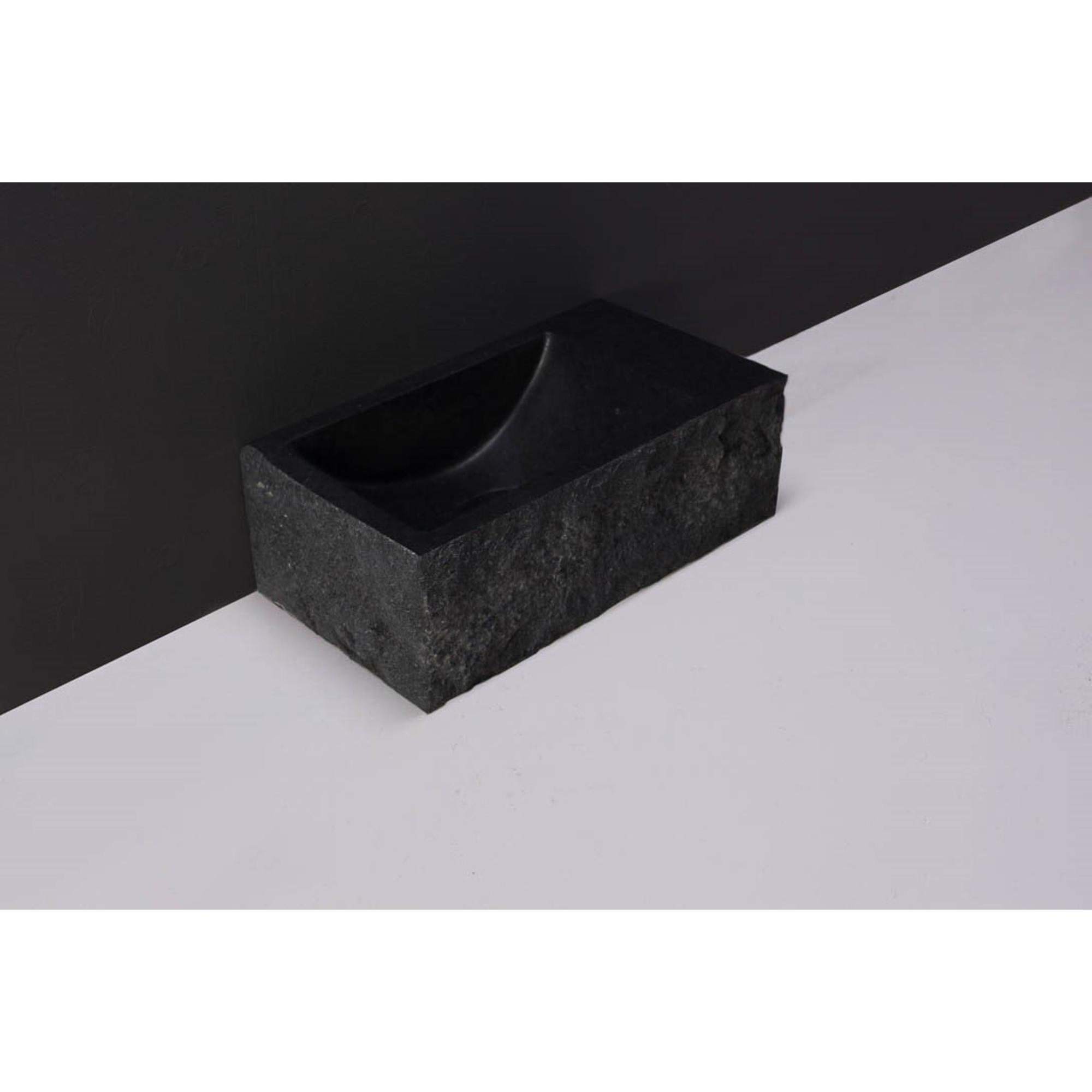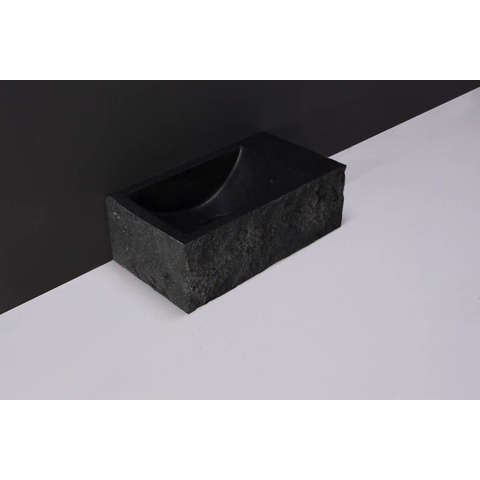 Forzalaqua Venetia Xs lave-mains 29x16x10cm lavabo Gauche 1 trou de robinet droit Pierre naturelle Granit adouci & taillé