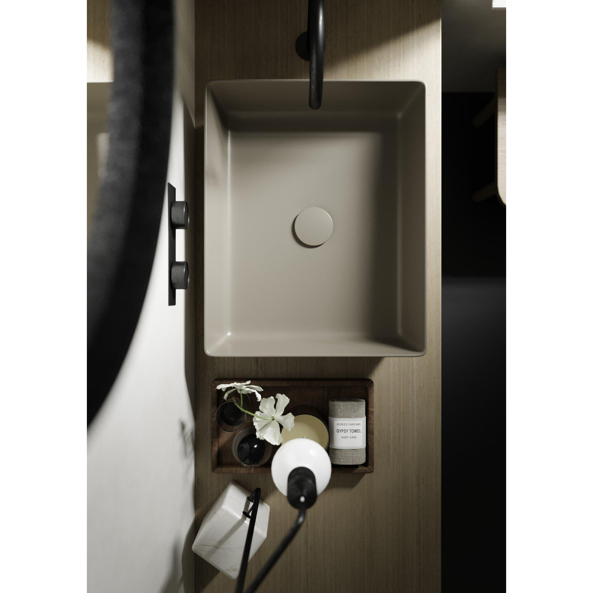 - Couleur sable mate qui se combine parfaitement avec les matériaux naturels et les styles de salle de bains modernes