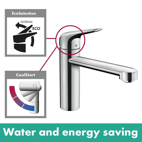 Hansgrohe M42 M4221-H120 Mitigeur de cuisine 1 trou CoolStart EcoClick avec bec pivotant à 360° chrome
