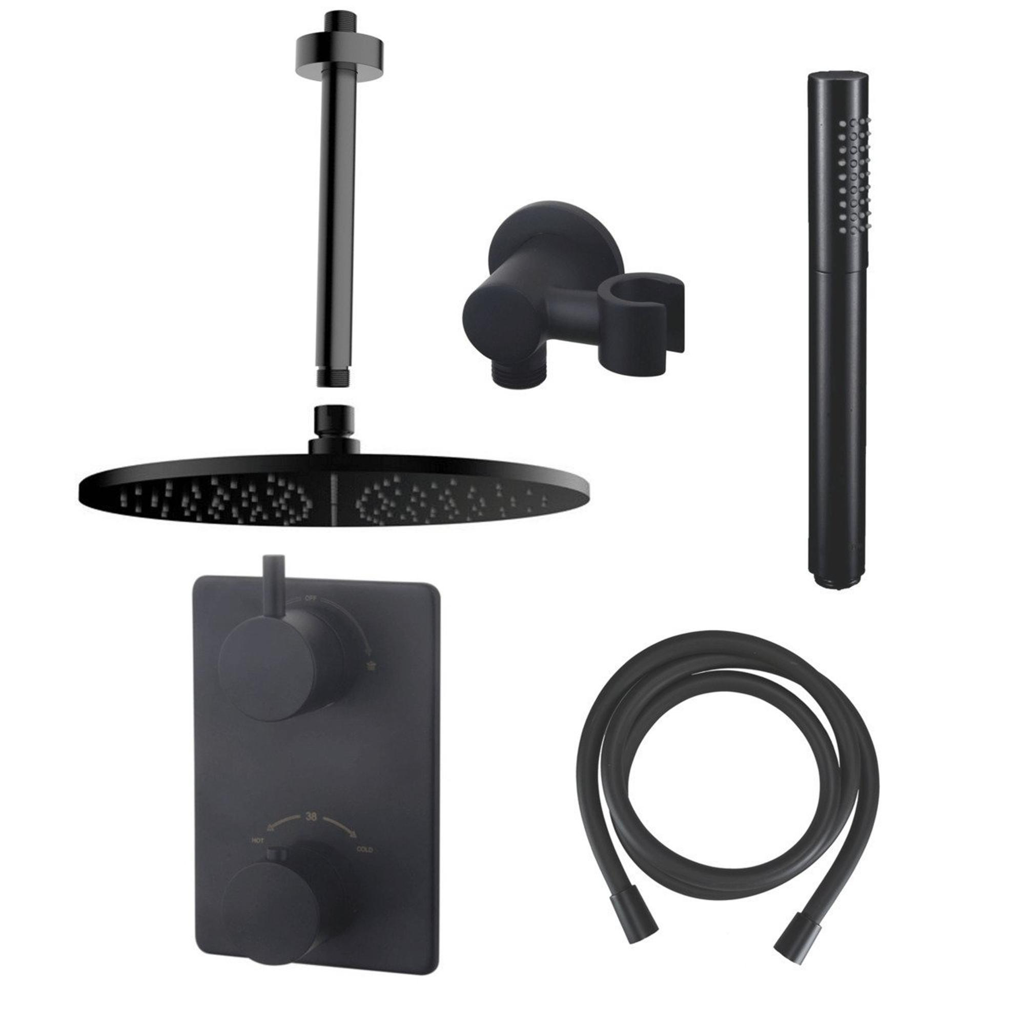 Wiesbaden Caral ensemble de douche encastré rond avec douche de tête 30 cm bras plafond douchette mat noir