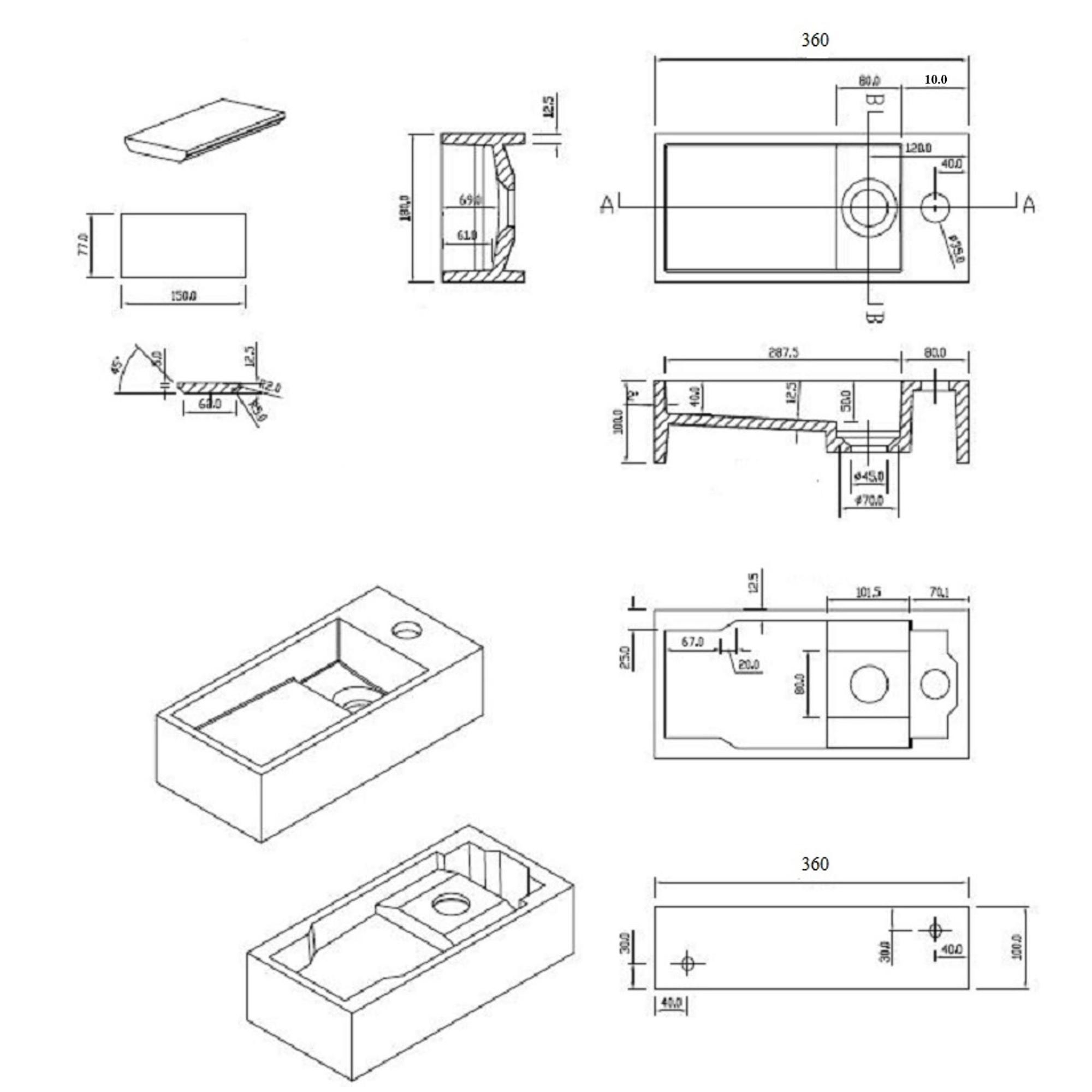 - Lave-mains compact d'environ 36 x 18 x 10 cm, idéal pour les petites toilettes et les salles de bains compactes.