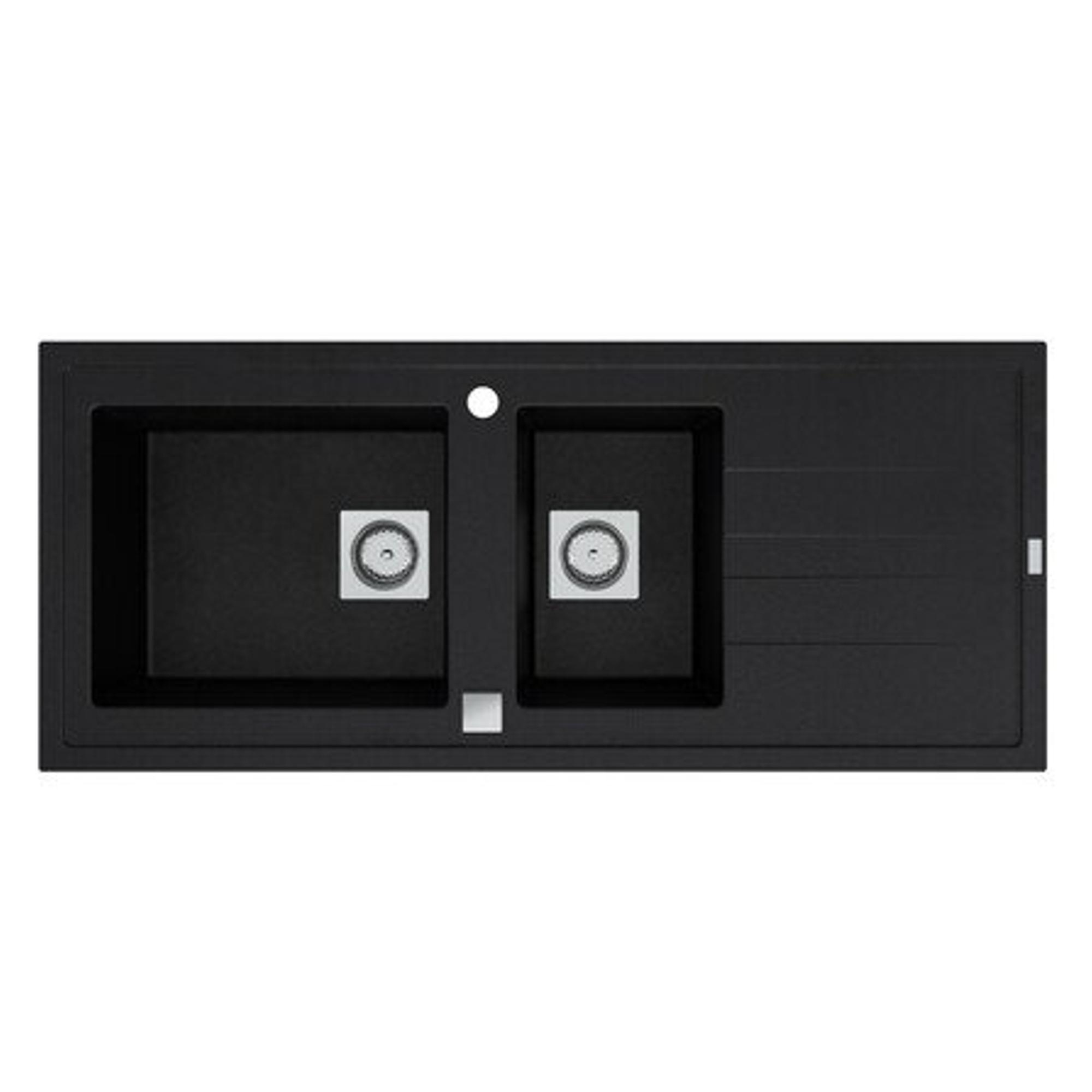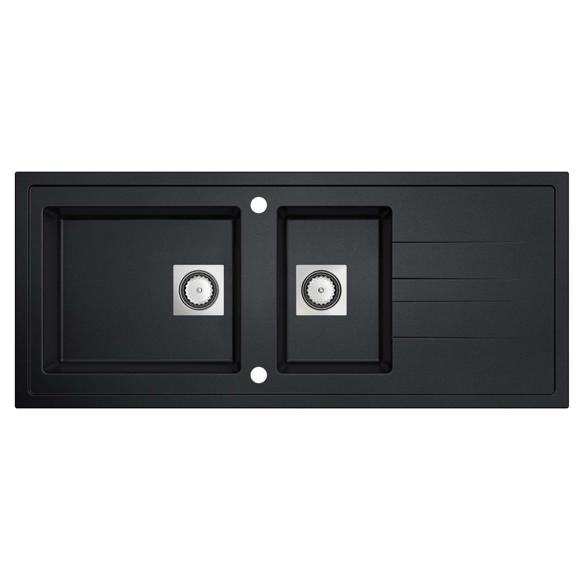 GO by Van Marcke Molto évier encastrable en matériau composite avec 2 bacs avec égouttoir 1170 x 500 mm avec bonde manuelle carrée réversible noir