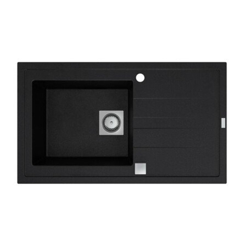 GO by Van Marcke Molto évier encastré en composite avec 1 cuve avec égouttoir 860 x 500 mm avec bonde manuelle carrée réversible noir