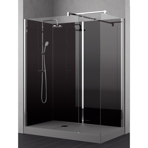 Nemo Stock Vidrio douche à l'italienne - 170x90x195cm - mur arrière noir - incluant receveur de douche gris - avec garniture - noir/chrome