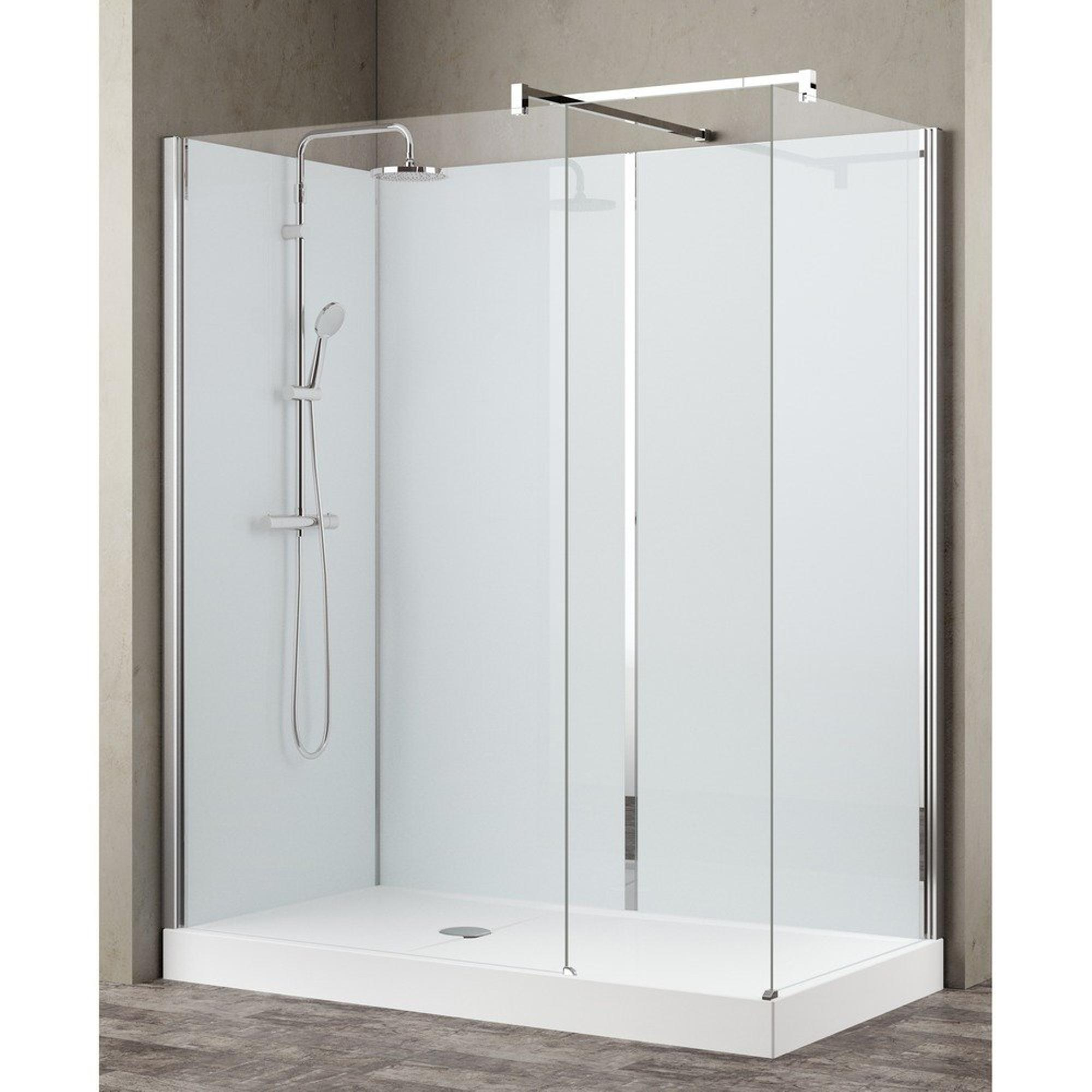 Nemo Stock Vidrio paroi de douche à l'italienne - 160x80x195cm - paroi arrière blanche - receveur de douche inclus - avec robinetterie - blanc/chrome