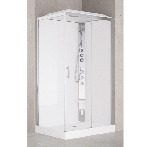 - Solution complète de douche et hammam dans une seule cabine de 120x90 cm avec installation en angle droit à droite.