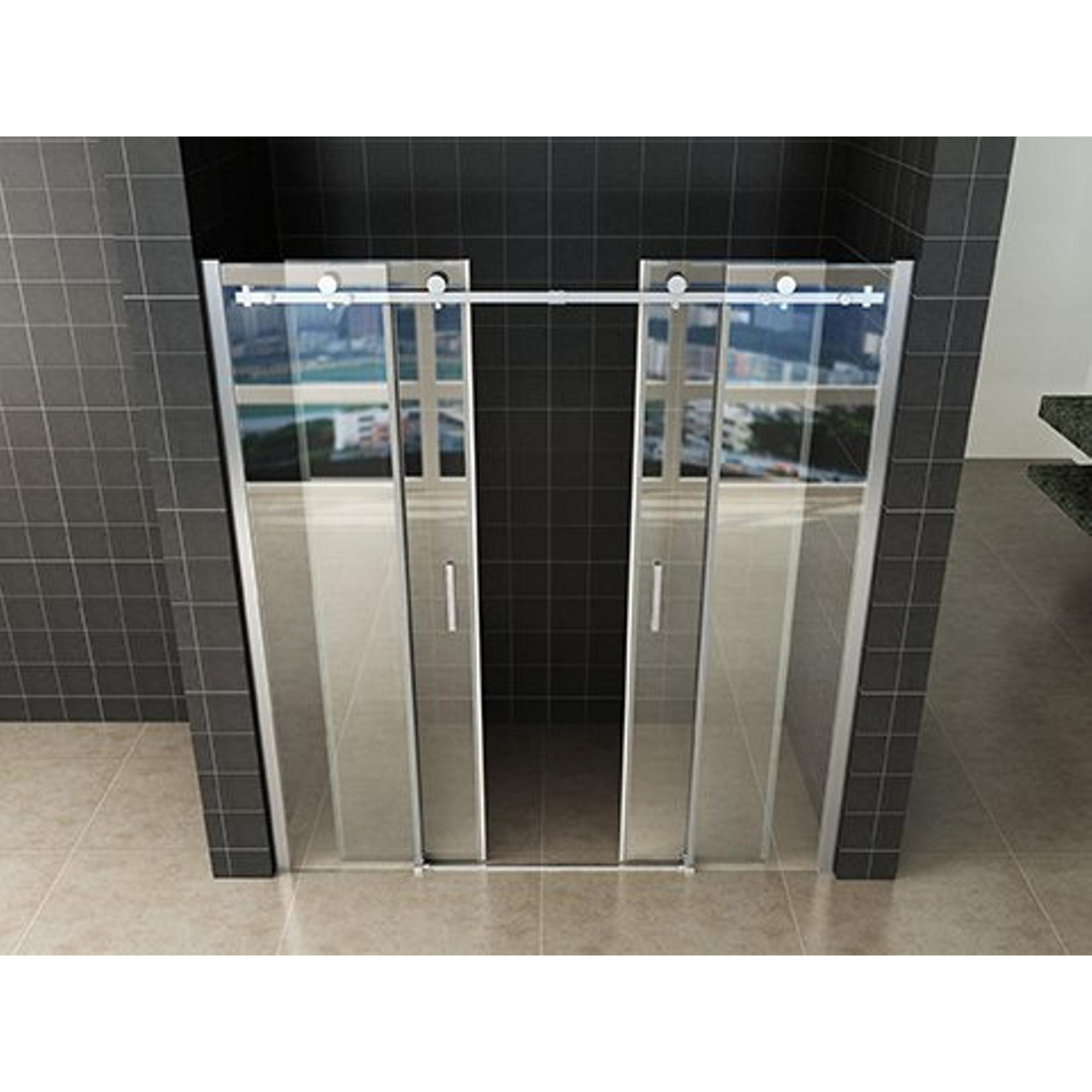 Wiesbaden Slide Porte coulissante double pour niche 1800 x 2000 x 8 mm verre clair nano chrome
