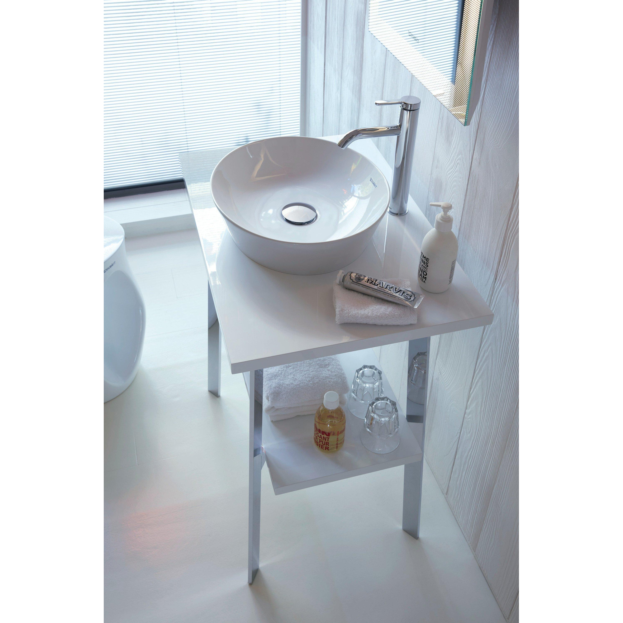 Comme cette vasque à poser est conçue sans trou de robinetterie et sans trop-plein, vous disposez d’une liberté maximale dans votre conception. Combinez la vasque avec un mitigeur haut sur plage installé sur le plan, ou optez justement pour un robinet mural épuré pour un look minimaliste et davantage d’espace autour de la vasque. La vasque convient pour une installation sur un meuble ou un plan, ce qui vous permet de créer beaucoup d’espace de rangement sous et autour de la vasque. En combinaison avec un siphon et une bonde assortis, vous composez facilement un ensemble qui s’accorde parfaitement avec le style de votre salle de bains, du chrome au noir mat ou au métal brossé.
