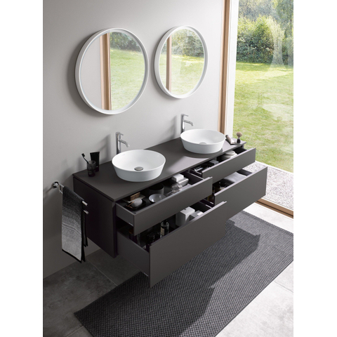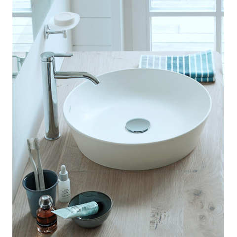 - Vasque à poser ronde avec Ø43 cm : espace de lavage généreux dans une forme élégante et compacte.
