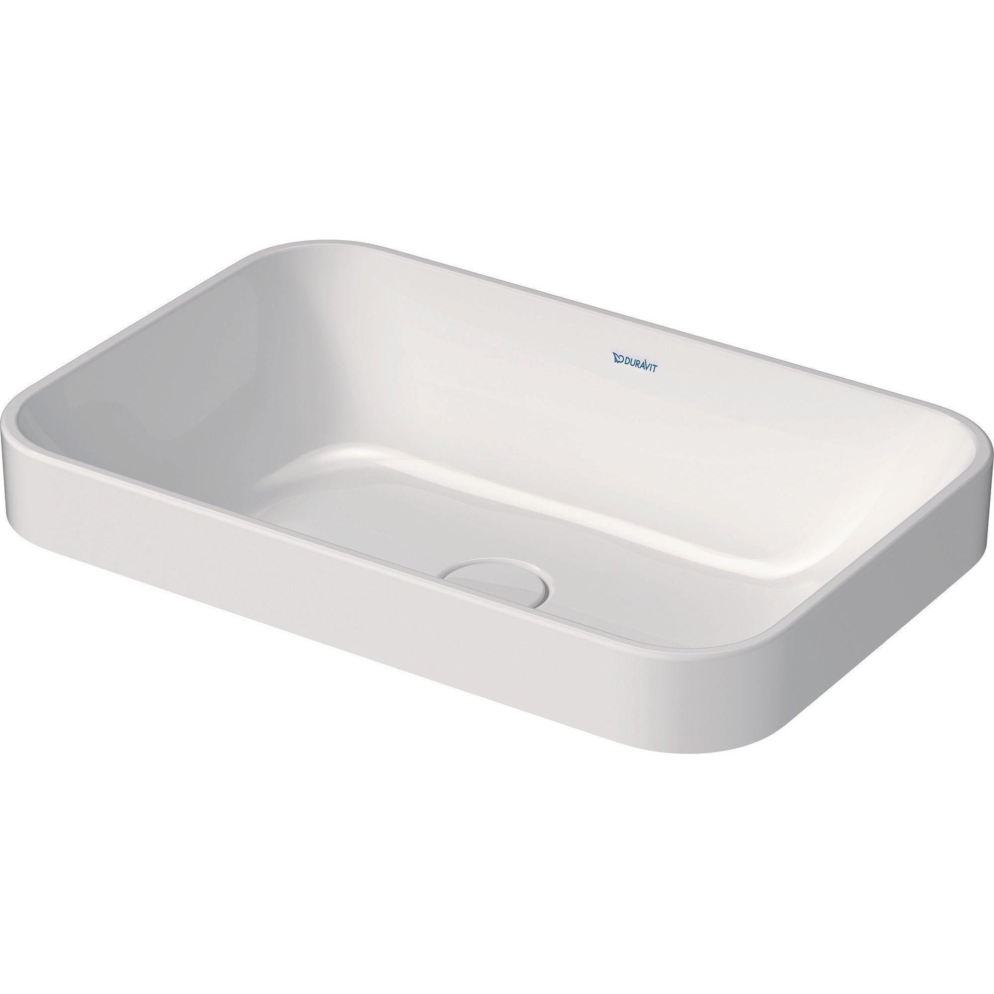 Duravit HappyD 2 Plus vasque rectangulaire sans trou de robinetterie sans trop-plein 60x40cm avec cache en céramique blanc