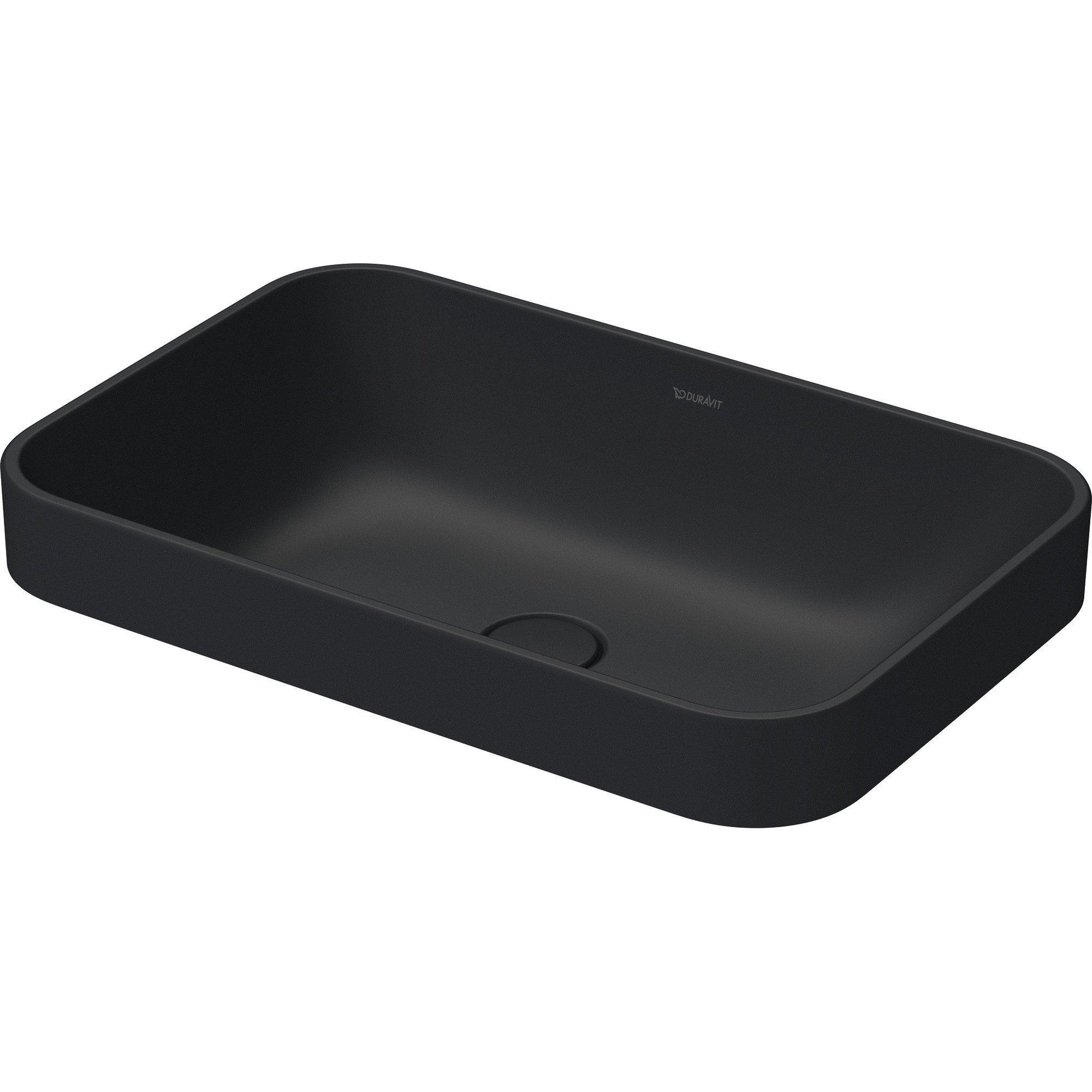 Duravit HappyD 2 Plus vasque rectangulaire sans trou de robinetterie sans trop-plein 60x40cm avec cache-bonde en céramique anthracite mat