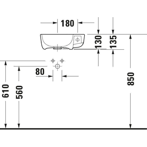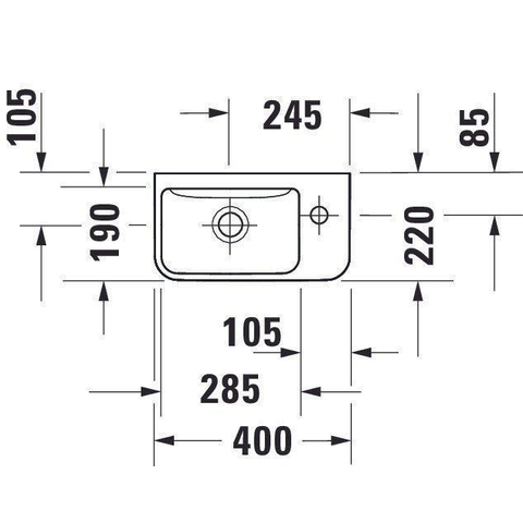 - Trou de robinet positionné à droite, adapté à un robinet de lave-mains ou de lavabo monotrou.