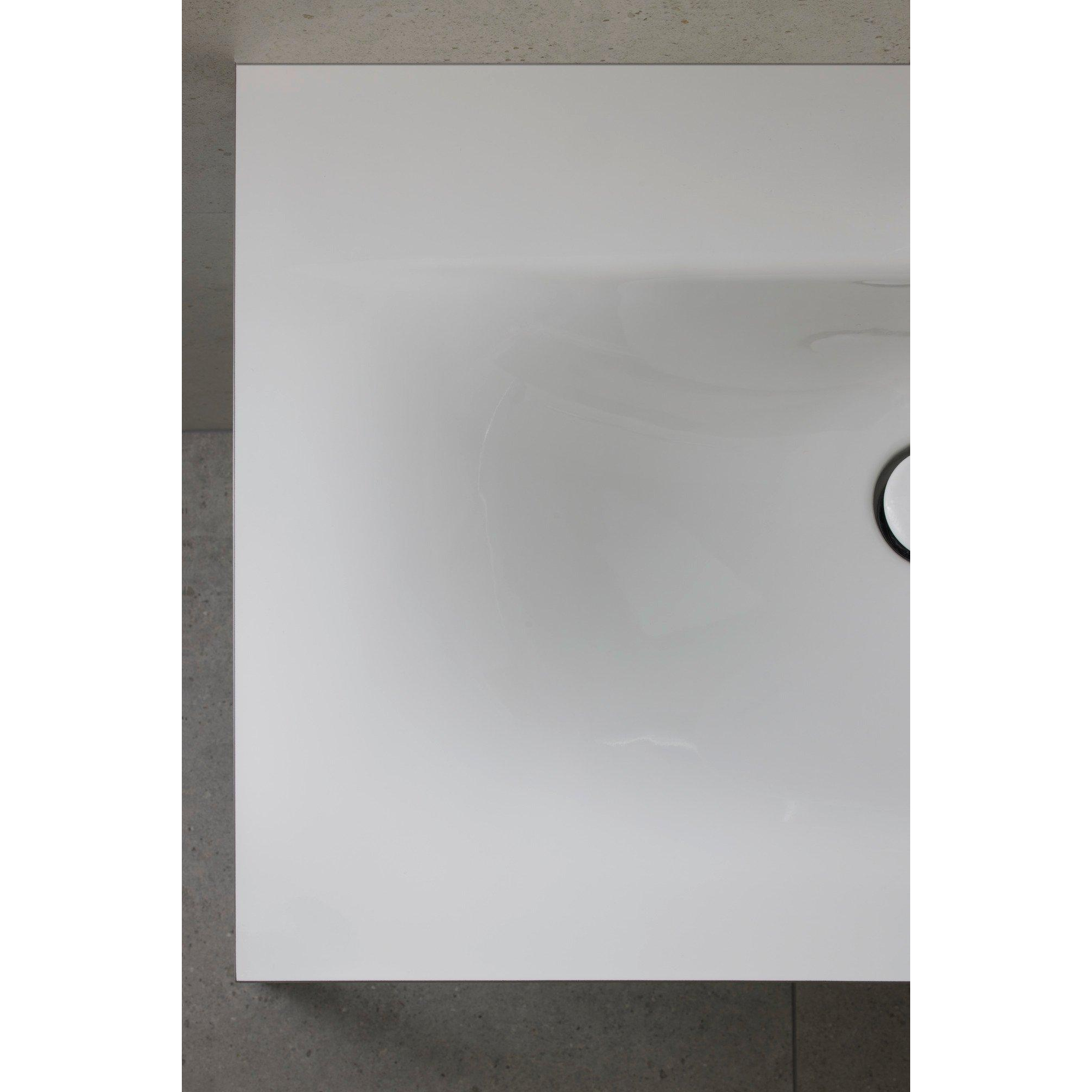Avec une dimension de 103x49 cm et une grande cuve, ce lavabo offre beaucoup d’espace pratique sans paraître massif. La forme rectangulaire assure une apparence moderne et épurée, tandis que la profondeur de 49 cm offre suffisamment de place pour vous laver confortablement les mains, le visage ou même de petits articles à laver. Le trou de robinetterie au centre est idéal pour un beau mitigeur de lavabo monocommande, ce qui permet de créer un look calme et symétrique. Les bords offrent suffisamment d’espace de dépose pour le savon, les brosses à dents et les produits de soin, afin que votre salle de bains reste propre et bien organisée. Vous combinez ainsi design et confort d’utilisation au quotidien.