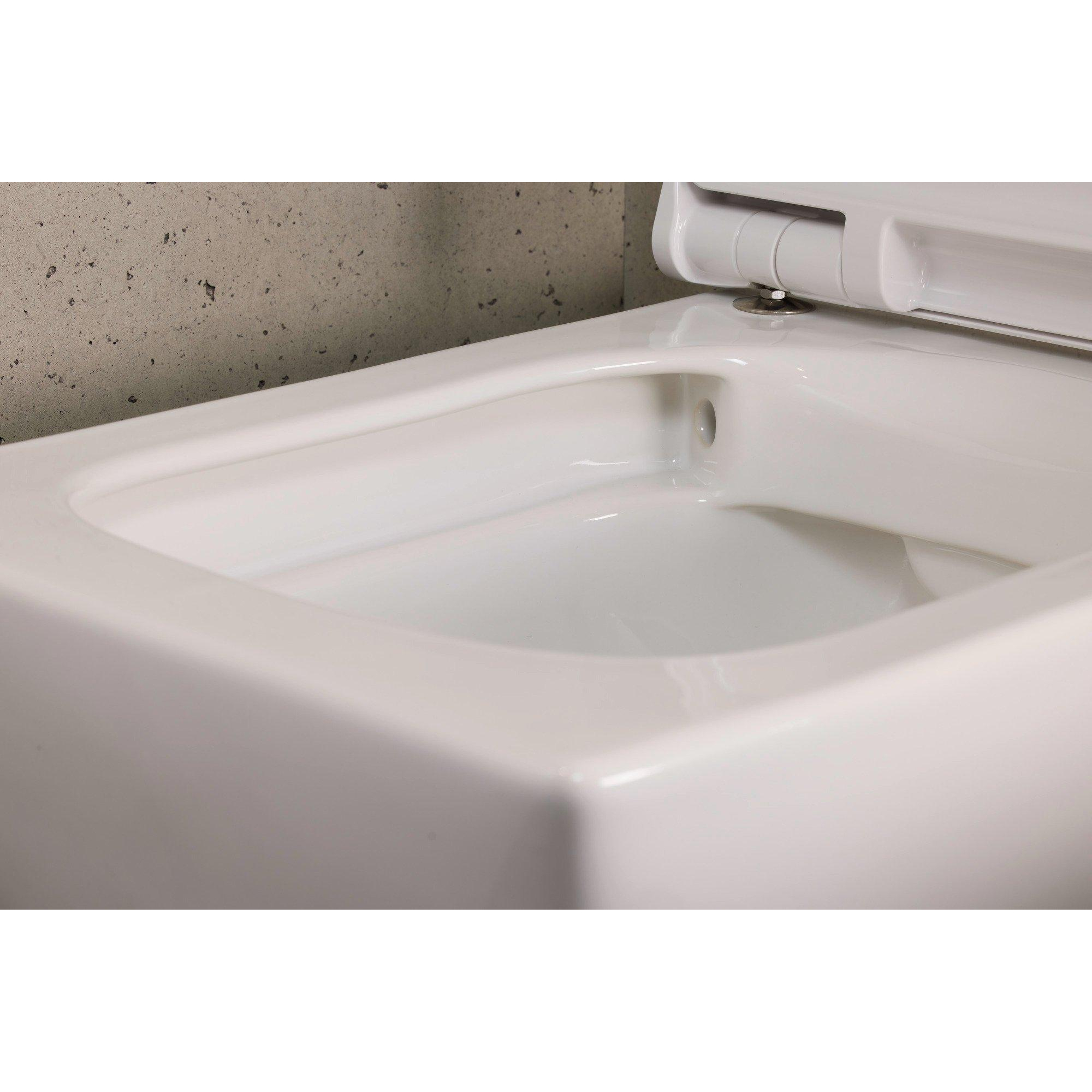 - WC suspendu compact d’environ 37x48 cm : idéal pour les petites salles de bains et les toilettes.