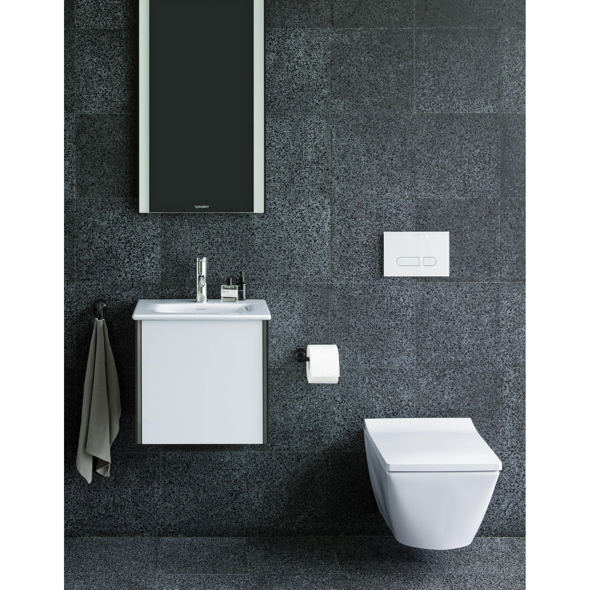 - WC suspendu pour une impression d’espace et un nettoyage facile du sol sous les toilettes.
