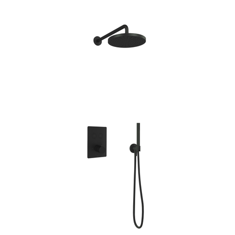 Hotbath Cobber IBS23 Ensemble de douche pluie encastré - bras mural 35cm - douche principale ronde 30cm - douchette à main - noir mat