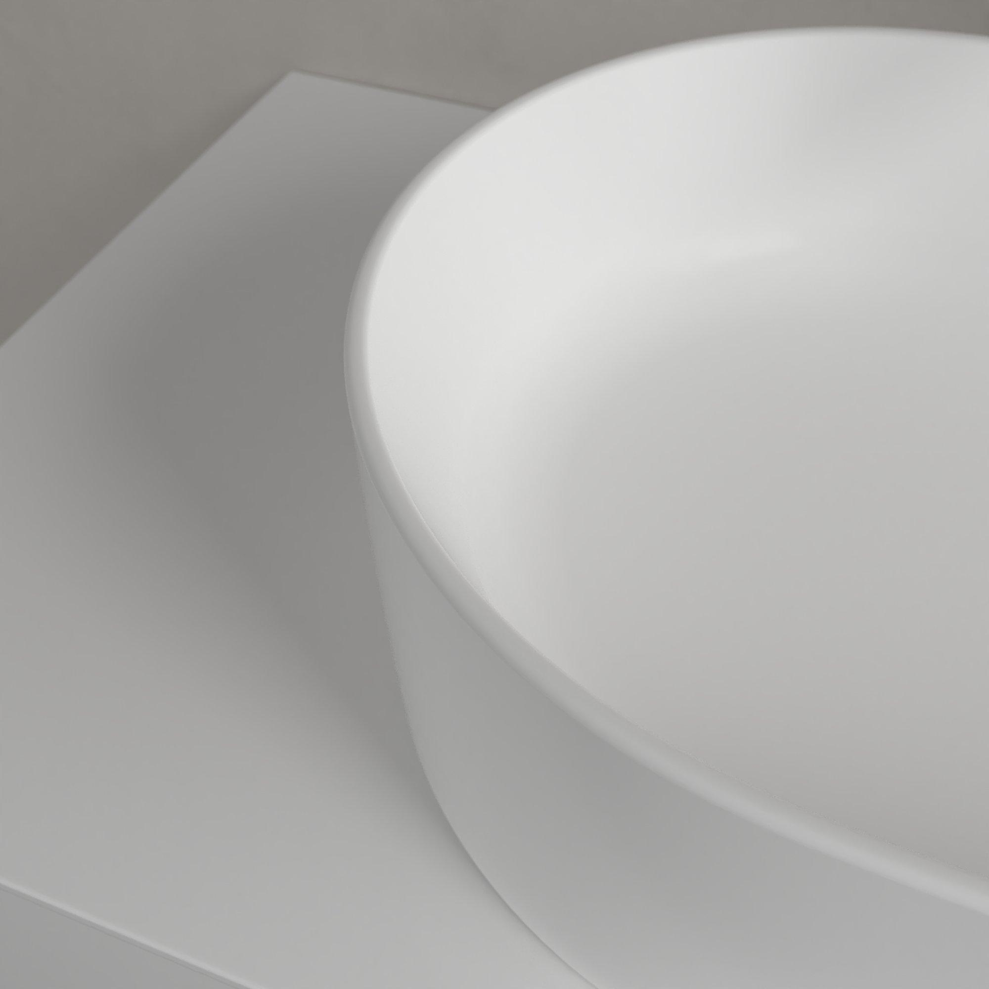 • Vasque à poser ovale d’environ 56 x 36 cm : compacte, mais avec un volume intérieur confortable.