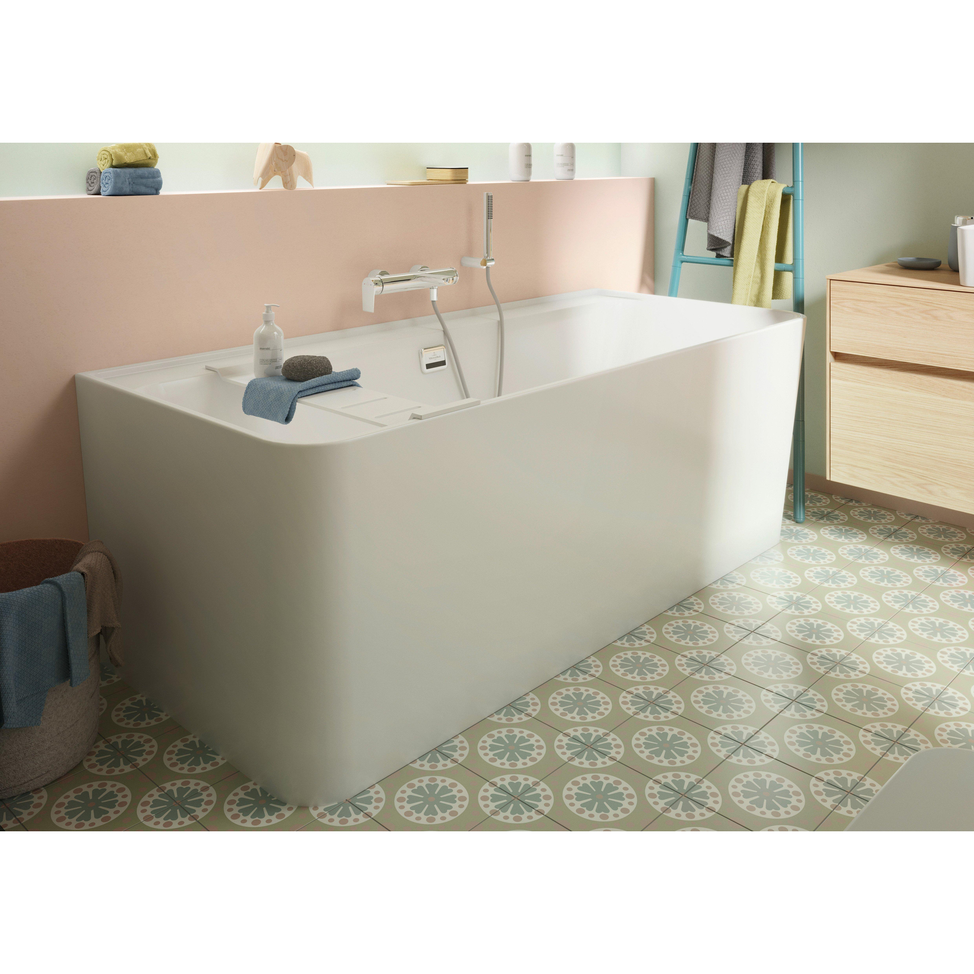 Si vous rêvez de l’apparence luxueuse d’une baignoire îlot, mais que vous êtes limité à une installation contre le mur, alors cette baignoire semi-autoportante est un choix particulièrement astucieux. Les lignes épurées, les bords fins et la finition blanc brillant assurent un look moderne et minimaliste qui s’intègre parfaitement dans une salle de bains contemporaine. Grâce à la généreuse zone de couchage et au vidage central, cette baignoire est idéale pour ceux qui veulent vraiment se détendre, seul ou à deux, sans faire de concessions sur le confort. Le large rebord offre en plus de la place pour des produits de soin, un verre à boire ou quelques bougies, ce qui vous permet de créer facilement une atmosphère digne d’un spa. Grâce à l’acrylique facile d’entretien, ce modèle convient aussi aux foyers occupés qui veulent profiter du luxe, sans avoir envie de beaucoup de travail de nettoyage. Que vous aménagiez une petite salle de bains en ville ou une grande suite parentale, avec cette combinaison de design, de confort et d’avantages pratiques, vous faites tout simplement le bon choix.