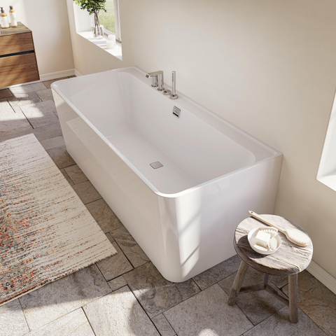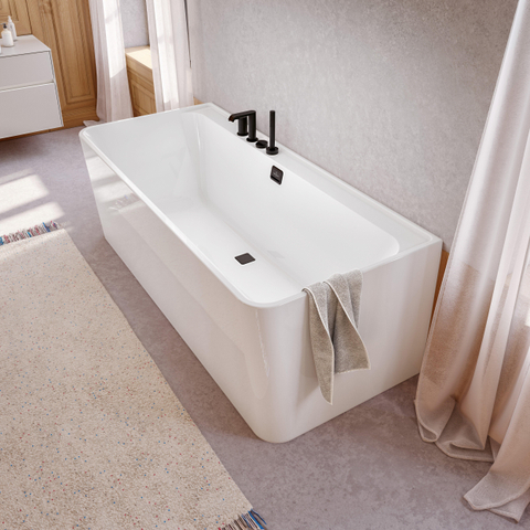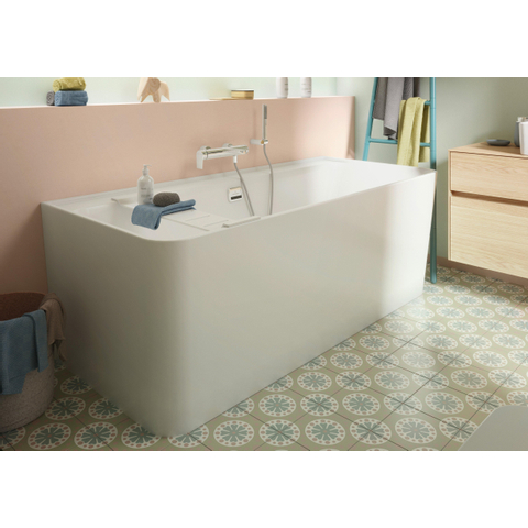 Avec son installation semi-autoportante, cette baignoire combine le meilleur des deux mondes : l’apparence luxueuse d’un modèle îlot et l’avantage de gain de place d’une pose contre le mur. Les bords étroits et raffinés et la forme rectangulaire créent un design épuré et intemporel qui s’accorde sans effort avec les tendances de salles de bains modernes. Le trop-plein en forme de fente subtile et les accents chromés apportent une touche premium supplémentaire, sans que l’ensemble paraisse chargé. Comme le côté long est libre dans l’espace, vous créez un véritable point de mire dans la salle de bains, tout en utilisant efficacement vos mètres carrés disponibles.