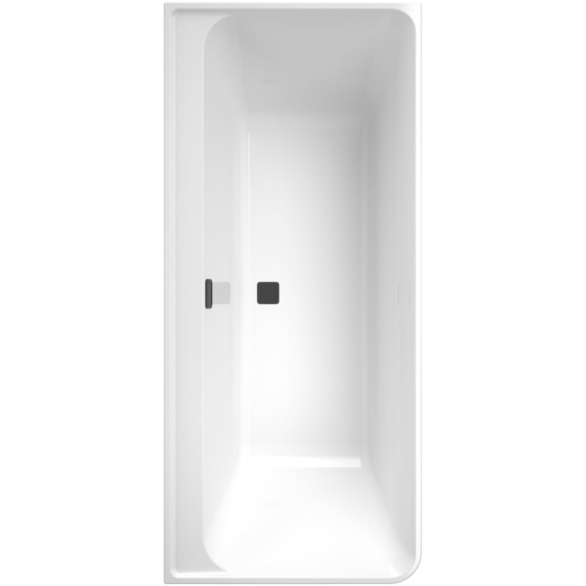 Les dimensions généreuses d’environ 180x80 cm et la cuve intérieure spacieuse rendent cette baignoire particulièrement confortable, même si vous êtes grand ou si vous aimez avoir un peu plus de liberté de mouvement. Les deux dossiers ergonomiques soutiennent votre corps de manière naturelle, afin que vous puissiez vous adosser en toute détente sans sentir de bords tranchants dans votre dos. La bonde et le trop-plein sont placés au centre, ce qui vous permet d’être confortablement installé aussi bien seul qu’à deux, sans que personne ne doive s’asseoir directement sur la bonde. Cela rend la baignoire idéale pour des moments de détente à deux, mais aussi pour les parents qui souhaitent se baigner avec un enfant. Le design droit et épuré assure en outre une apparence intemporelle que vous combinez facilement avec différents styles de robinets et de meubles de salle de bains.