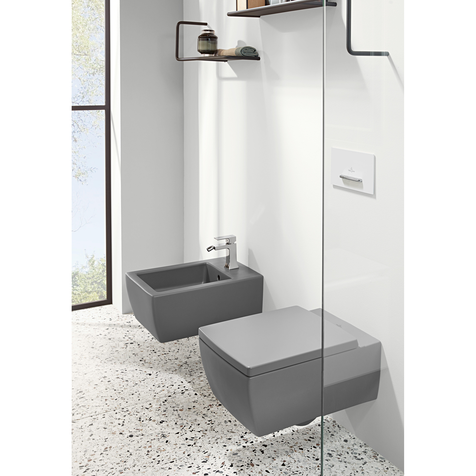 Avec sa couleur graphite intemporelle, l'abattant de WC Villeroy & Boch Memento 2.0 ajoute une touche d'élégance à toute salle de bains. Son design épuré et moderne s'harmonise parfaitement avec différents styles de salle de bains et crée une apparence luxueuse. Cet abattant n’est pas seulement fonctionnel, il sert également d’élément décoratif qui améliore l’esthétique globale de la pièce.