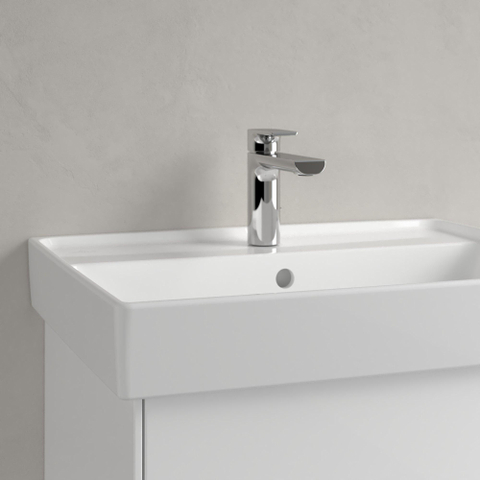 Ce lavabo est fabriqué en TitanCeram, une céramique particulièrement dure et robuste spécialement développée pour permettre des formes élancées sans compromettre la solidité. Le lavabo offre ainsi une sensation de solidité et résiste bien à une utilisation quotidienne, aux chocs des accessoires et aux nettoyages fréquents. La surface céramique lisse se nettoie facilement avec un produit d’entretien doux : la saleté et le calcaire adhèrent moins rapidement, ce qui vous permet de conserver avec peu d’efforts un lavabo frais et hygiénique. La couleur blanche intemporelle se combine facilement avec pratiquement toutes les finitions de robinet, du chrome classique au noir mat ou au métal brossé, ce qui vous permet de changer de style aisément à l’avenir.