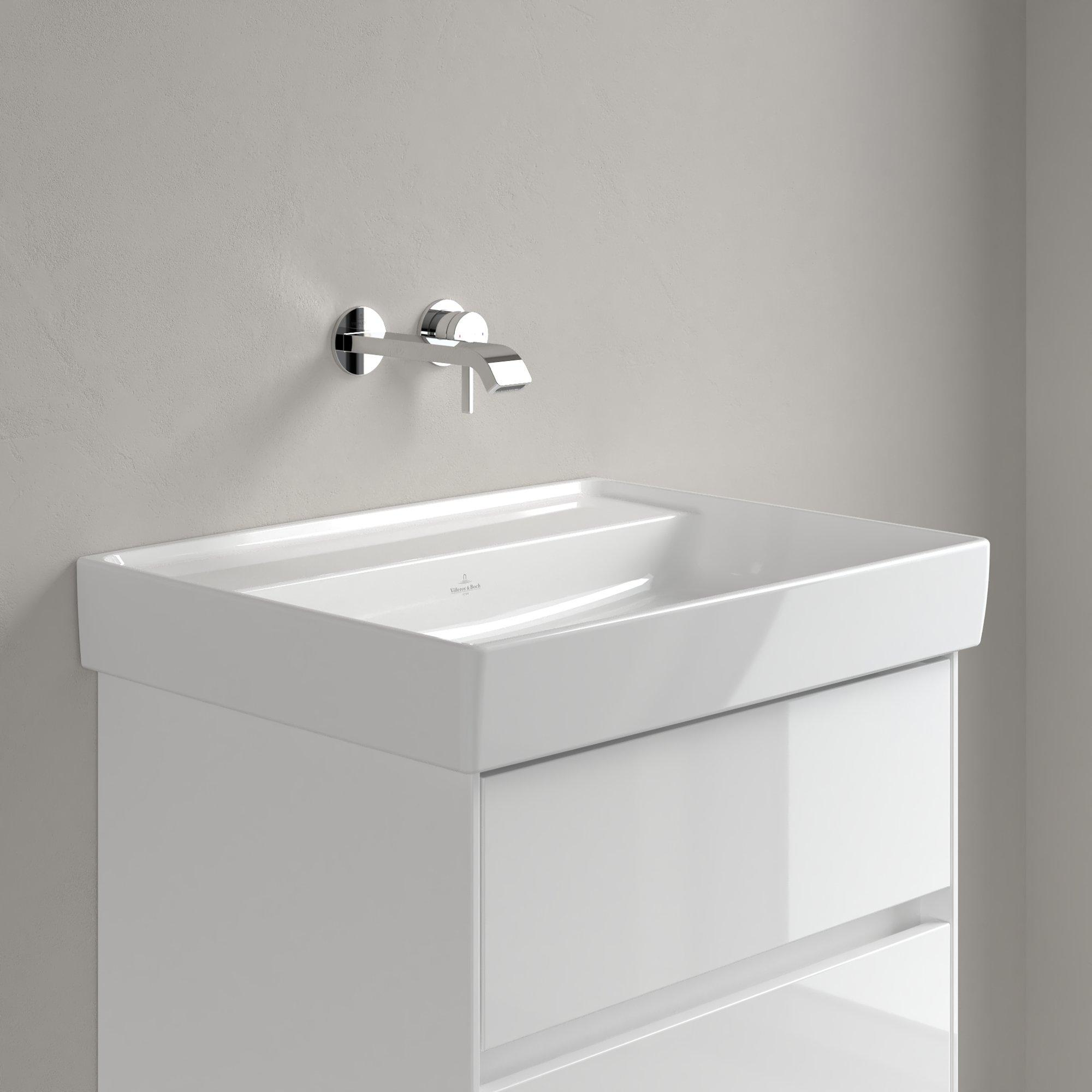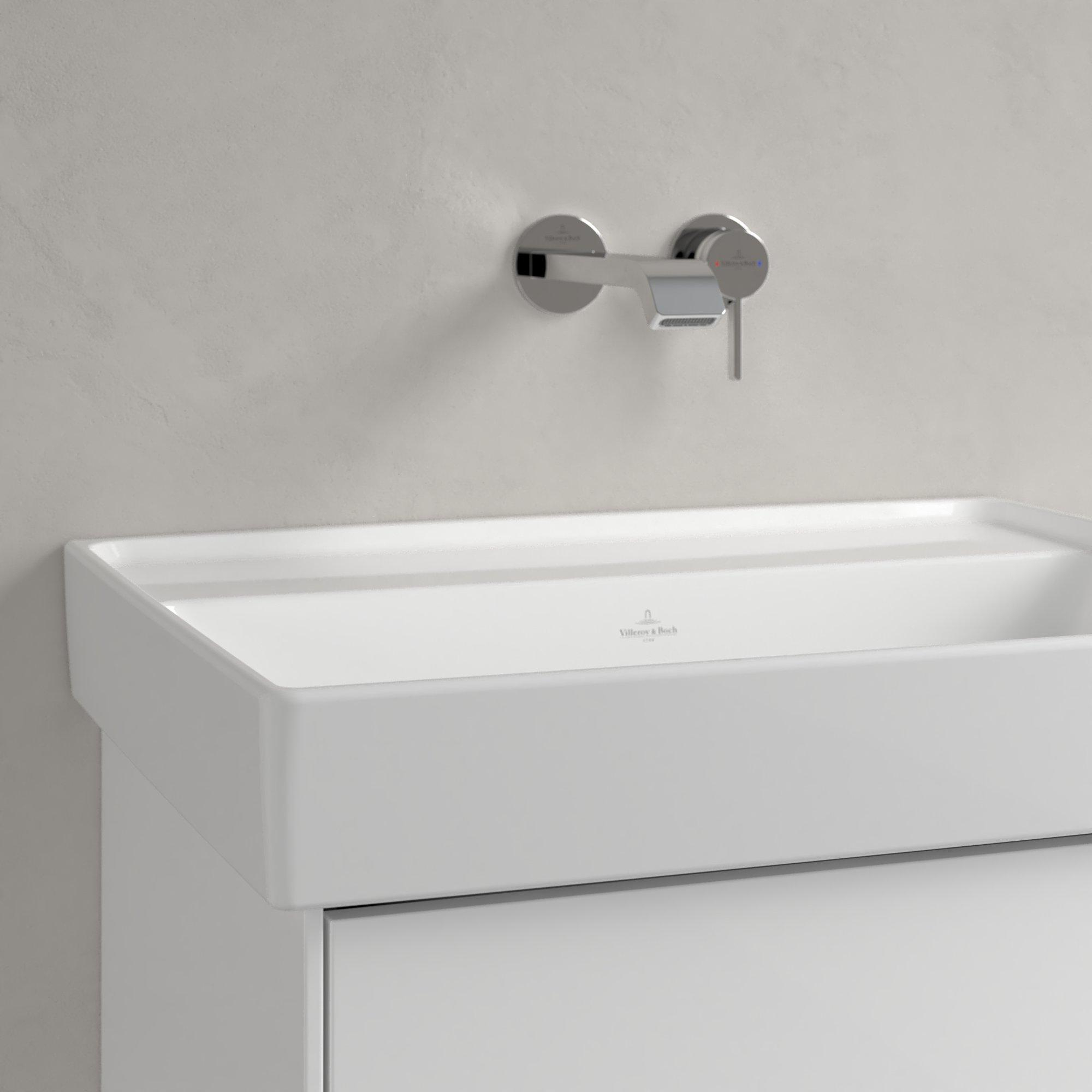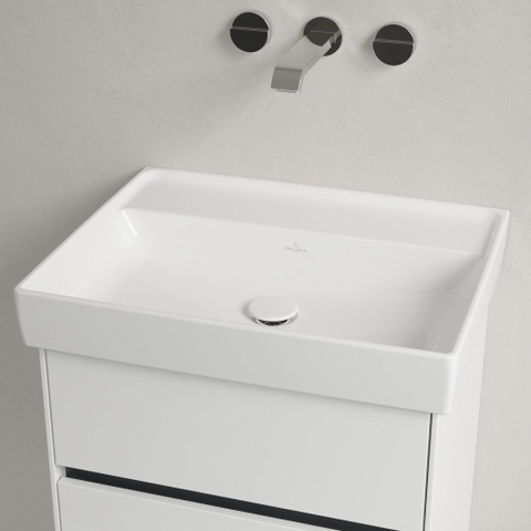 Fabriqué en TitanCeram, un mélange céramique innovant de Villeroy & Boch, ce lavabo n’est pas seulement beau, mais aussi exceptionnellement robuste et stable en forme. Ce matériau permet des bords fins et filigranes sans compromettre la solidité. La couleur White Alpin avec traitement de surface CeramicPlus fait que l’eau et la saleté adhèrent moins, de sorte que les gouttes s’écoulent plus rapidement et que les dépôts de calcaire et de savon sont plus faciles à rincer. Cela signifie moins de temps de nettoyage et moins de produits d’entretien agressifs, ce qui est un grand avantage tant pour vous que pour votre salle de bains.