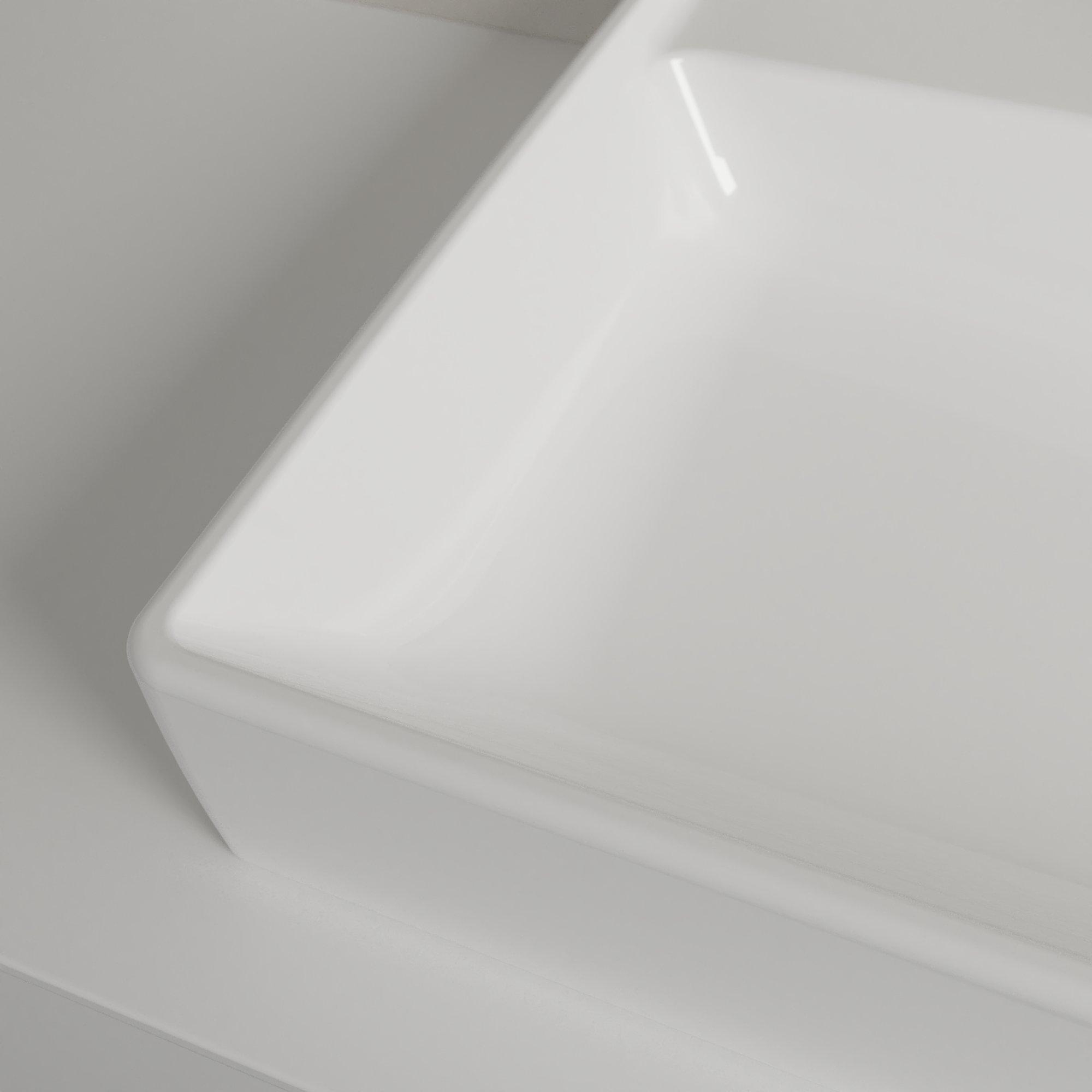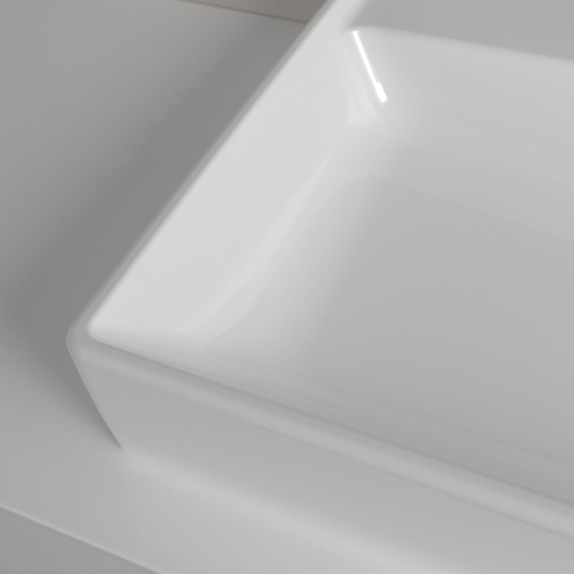 Les bords subtils et fins du lavabo lui confèrent une apparence élégante, presque délicate, sans rien sacrifier à la robustesse. Grâce aux lignes droites et épurées, votre salle de bains paraît immédiatement plus moderne et plus spacieuse, ce qui est un grand avantage surtout dans les petites salles de bains. Les bords étroits fonctionnent en même temps comme pare-éclaboussures, ce qui permet de mieux garder l'eau à l'intérieur de la cuve et de réduire les projections sur le sol ou autour de votre meuble. Vous combinez ainsi design et confort au quotidien : vous profitez d'un look luxueux, tout en devant nettoyer moins souvent. Le blanc neutre s'harmonise parfaitement avec différents meubles de salle de bains et carrelages, ce qui vous permet de créer facilement un ensemble harmonieux.