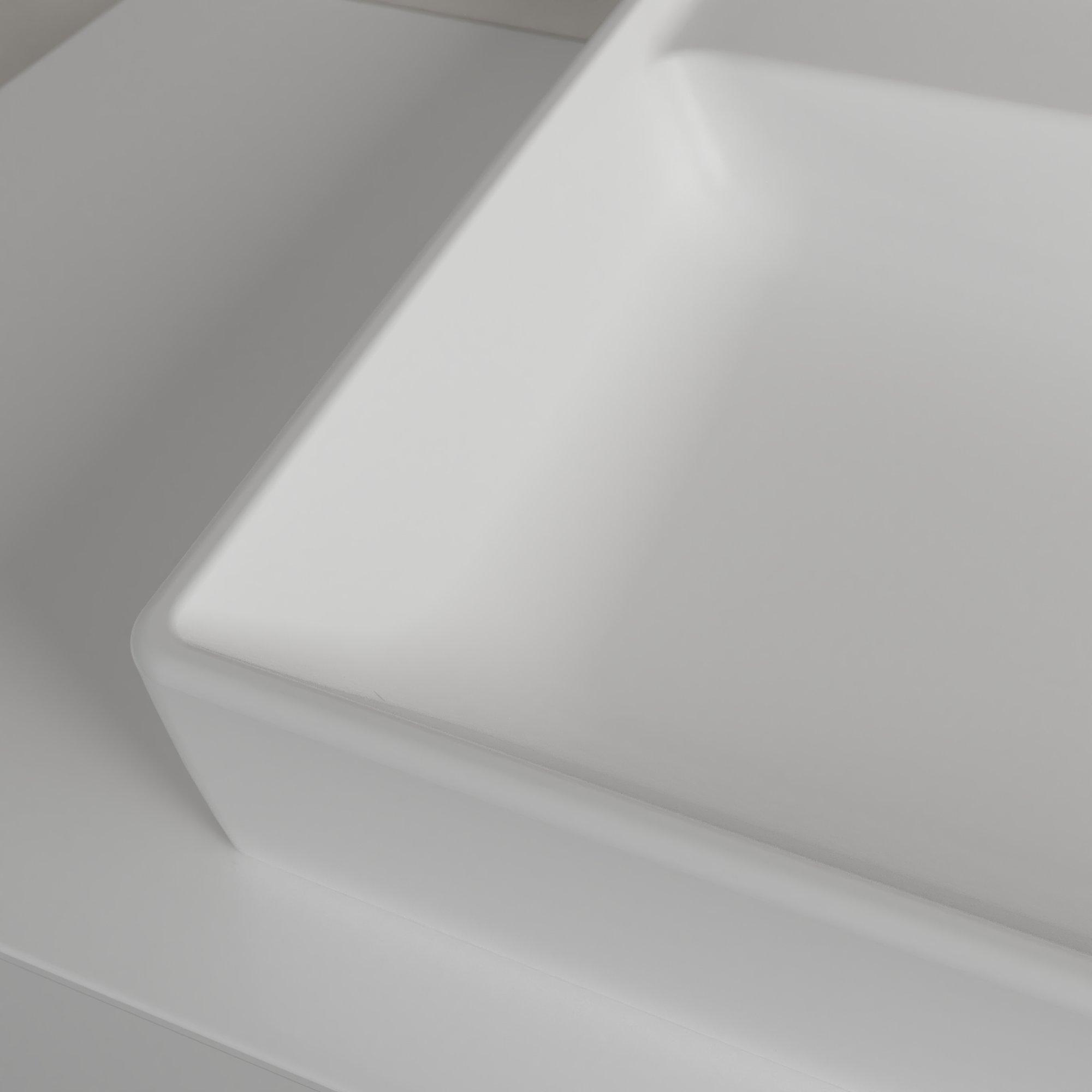 Ce lavabo est fabriqué en céramique robuste de haute qualité, spécialement développée pour permettre des formes fines et précises sans compromettre la résistance. Le résultat est un look raffiné avec des bords filigranes qui restent étonnamment robustes à l’usage quotidien. La couleur mate, minérale, Stone White confère une allure luxueuse et moderne et se marie harmonieusement aussi bien avec des meubles en bois clair qu’avec des façades foncées. Grâce à la finition soignée et à l’orifice de trop-plein intégré, il s’agit d’une solution sur laquelle vous pouvez compter pendant de nombreuses années, même dans un foyer animé avec une utilisation intensive.