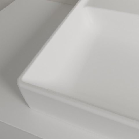 La surface céramique déperlante avec traitement de surface spécial garantit que l’eau et les saletés adhèrent moins facilement. Les gouttes perlent simplement, ce qui réduit la formation de dépôts de calcaire et de résidus de savon et vous permet de tout nettoyer rapidement avec un chiffon doux et un nettoyant doux. Cela signifie moins de récurage, moins de produits d’entretien agressifs et un lavabo qui reste visuellement plus frais, même en cas d’utilisation fréquente. La finition mate est en outre particulièrement résistante aux rayures et conserve plus longtemps son bel aspect, ce qui en fait un investissement judicieux si vous optez pour la qualité et la facilité d’entretien à long terme.
