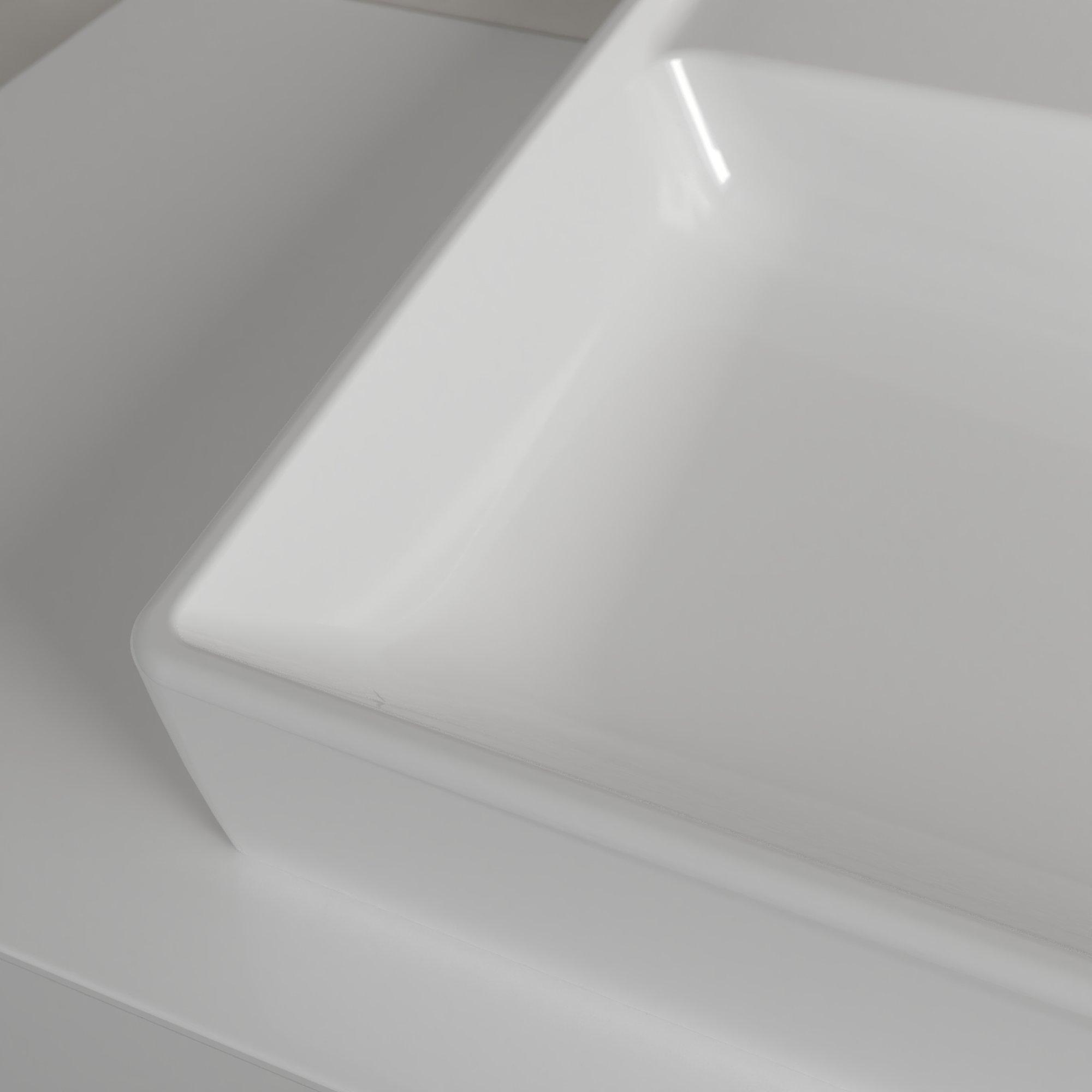 - Face inférieure parfaitement rectifiée, parfaitement adaptée à un montage sur un meuble de salle de bains.