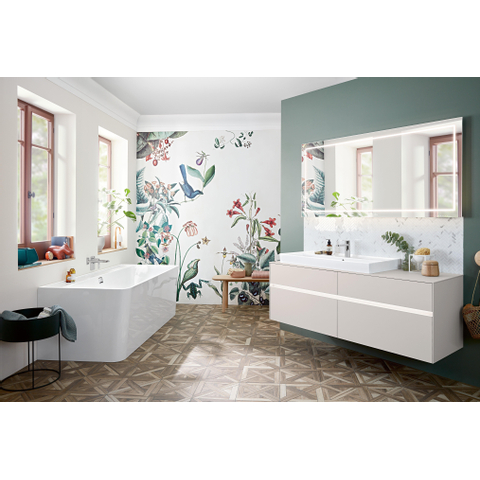 Avec sa face inférieure parfaitement rectifiée, ce lavabo est idéal à combiner avec un meuble bas ou un meuble de salle de bains sur mesure. Le format de 100 cm permet une configuration généreuse, par exemple comme élément phare dans une salle de bains familiale ou comme lavabo confortable dans une grande salle de bains d’amis ou de style hôtel. La large plage de robinetterie vous donne la liberté de regrouper les accessoires de manière ordonnée, afin que l’ensemble paraisse calme et organisé. Choisissez un meuble assorti en dessous, en aspect bois, blanc mat ou dans une couleur marquée, et créez facilement le style qui s’harmonise avec votre intérieur, du scandinave clair et aéré au style épuré et minimaliste. Ce lavabo constitue ainsi la base idéale pour une salle de bains qui vous ressemble entièrement.