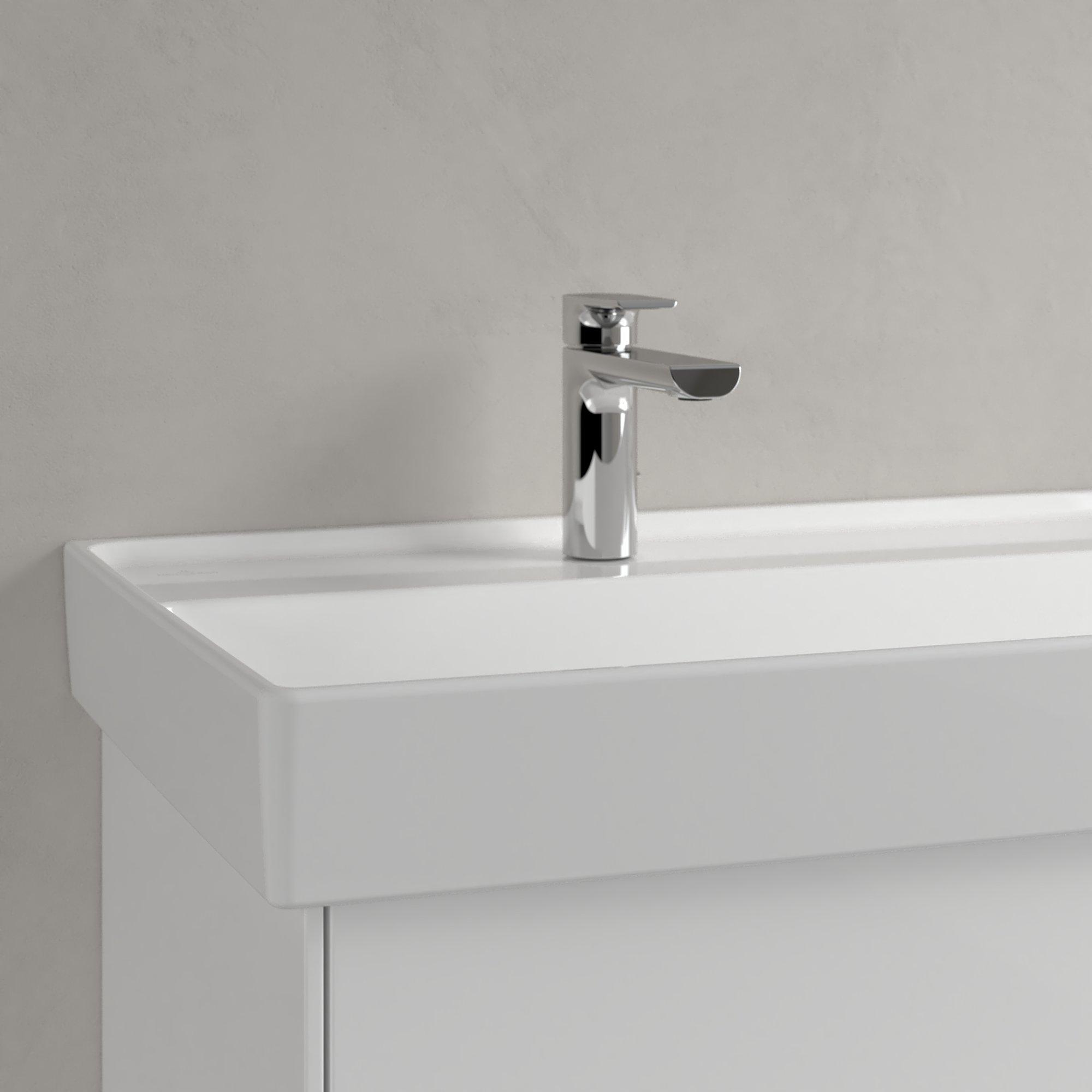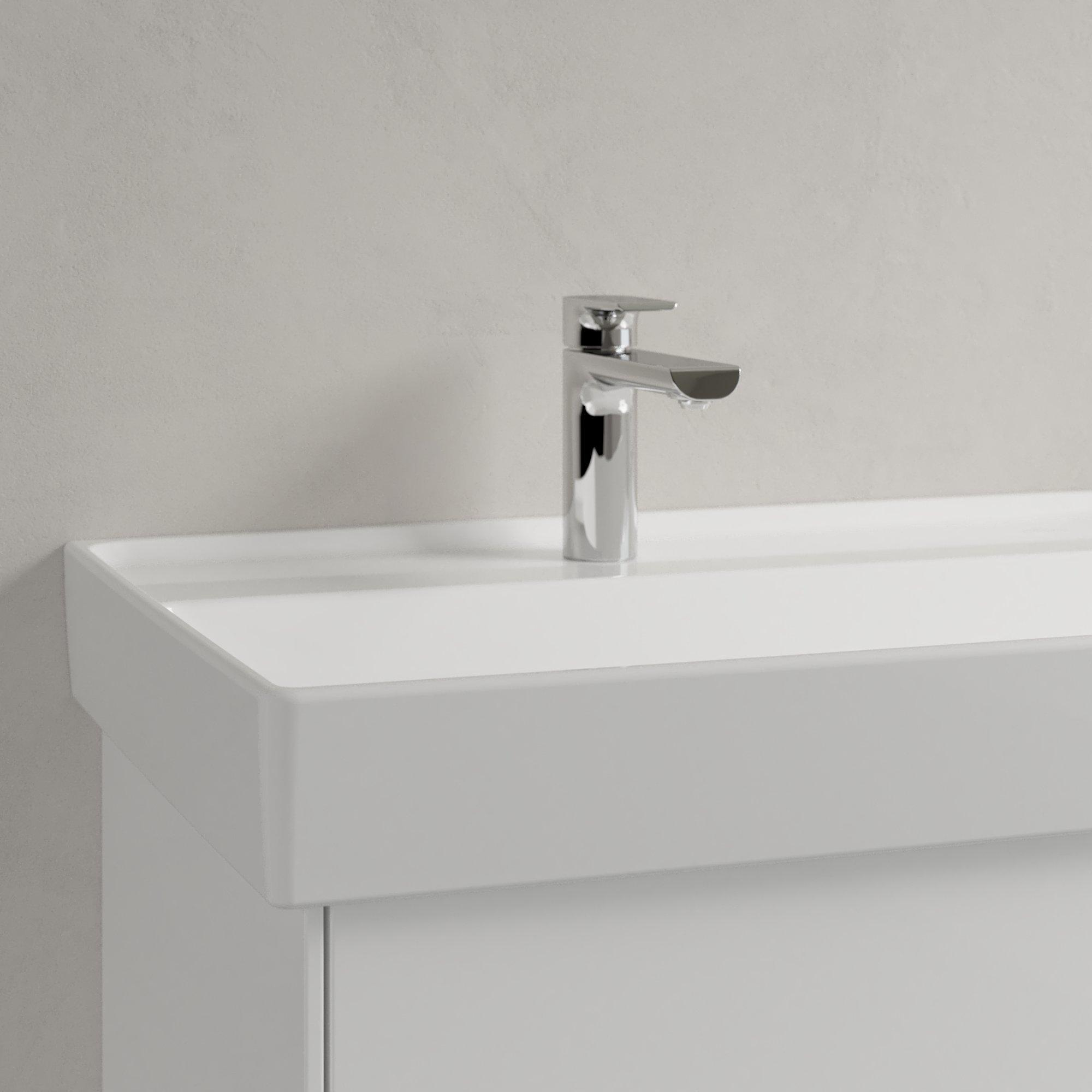 Ce lavabo se distingue immédiatement par ses bords extrêmement fins et raffinés qui procurent une allure légère, presque flottante. Cela donne à votre salle de bains un look moderne et haut de gamme sans être trop ostentatoire. Les bords étroits fonctionnent en outre comme un pare-éclaboussures subtil : ils aident à garder les éclaboussures d’eau à l’intérieur du lavabo et limitent ainsi les taches d’eau indésirables sur le sol ou sur le meuble. Le large bord de robinetterie offre suffisamment de place pour deux robinets, mais aussi pour les objets du quotidien tels que distributeurs de savon et gobelets à brosses à dents, de sorte que vous n’êtes pas obligé de tout ranger dans le meuble. Grâce aux lignes sobres et au blanc lumineux, vous combinez ce lavabo sans effort avec différents styles de robinetterie, miroirs et meubles, du chrome épuré au noir mat.