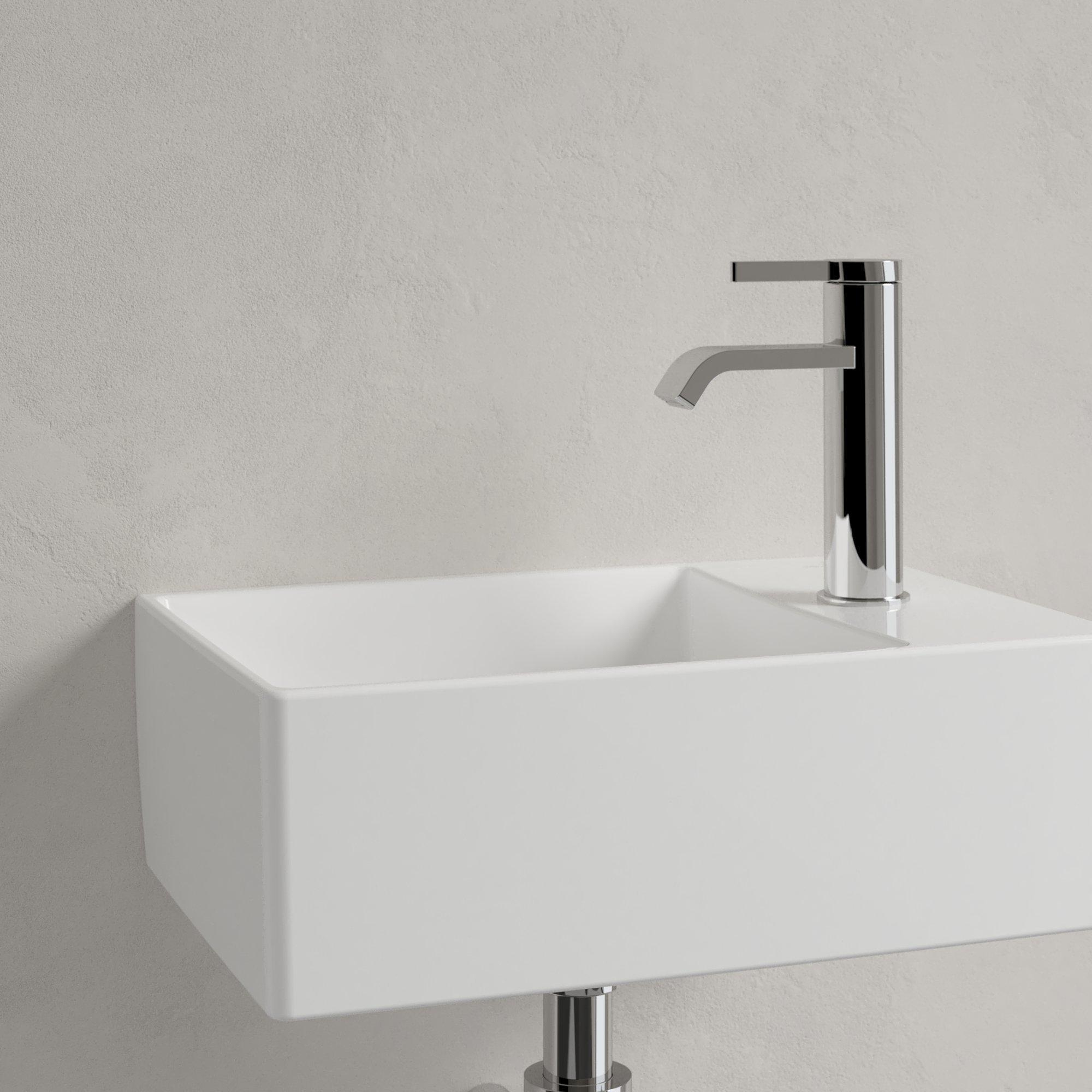 Vous recherchez un petit lave-mains épuré et peu encombrant pour vos toilettes ou votre petite salle de bains, sans faire de compromis sur la qualité et l’esthétique ? Ce modèle compact est spécialement conçu pour les espaces réduits, où chaque centimètre compte et où un look soigné et moderne est important. Grâce à sa forme rectangulaire et à sa conception astucieuse avec une zone de robinet latérale, vous gardez davantage de liberté de mouvement au-dessus du lavabo, idéal pour se laver les mains au quotidien dans les toilettes, la salle de bains des invités ou une petite salle de bains citadine. Le design minimaliste se marie parfaitement avec des carreaux modernes, des accents noirs ou au contraire des éléments blancs intemporels. Grâce à la céramique de haute qualité avec finition anti-salissures, la surface reste en outre propre et fraîche plus longtemps, ce qui vous permet, avec peu d’efforts, de donner une impression soignée, pour vous-même comme pour vos invités.