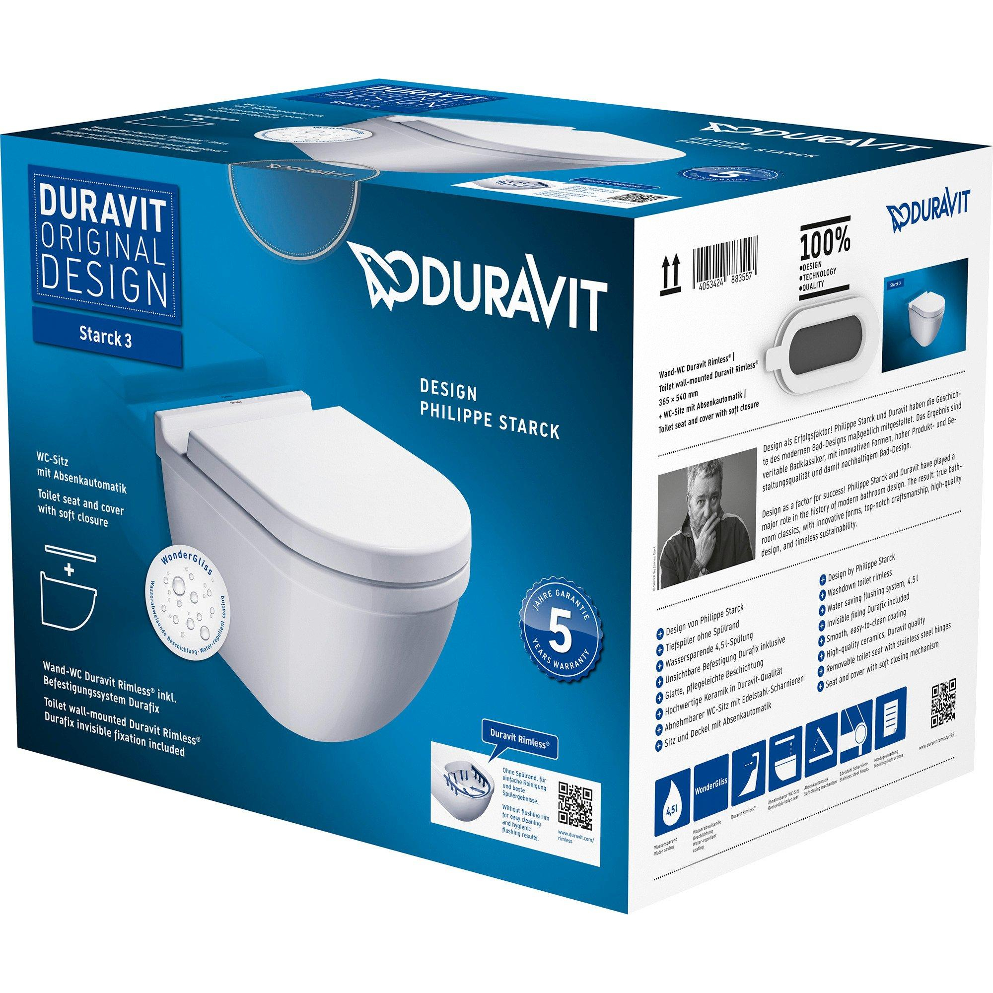 Duravit Starck 3 ensemble WC suspendu cuvette profonde sans bride 36x54cm avec abattant softclose Wondergliss blanc