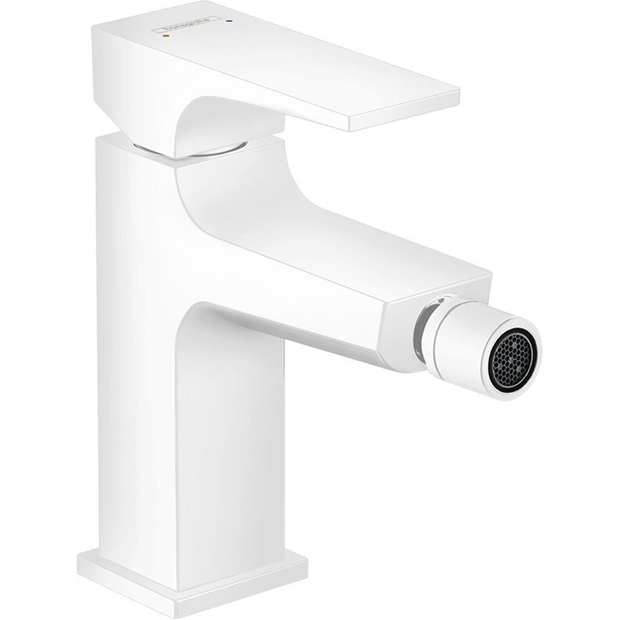 Hansgrohe Metropol Robinet de bidet 1 trou 100 avec vidage push open avec bec décalé 12.9 cm mat blanc