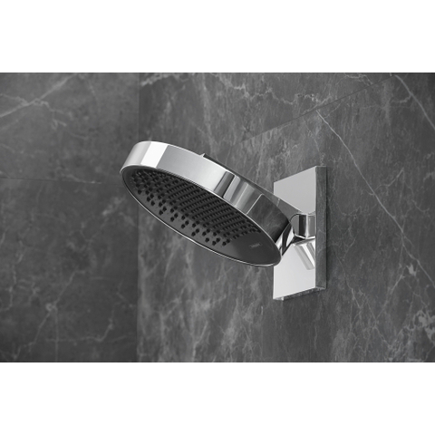 Le design de cette pomme de douche est un mélange parfait d'élégance et de tendances modernes. La combinaison du chrome brillant et de la plaque de jet anthracite, légèrement incurvée vers l'intérieur, offre une apparence raffinée qui attire immédiatement l'œil. Cela fait de la tête de douche non seulement un élément fonctionnel, mais aussi un véritable point fort dans votre salle de bains. Grâce à son design intemporel, elle s'adapte facilement à différents styles d'intérieur, du minimaliste et épuré au chaleureux et naturel. Vous ajoutez ainsi une touche de luxe sans qu'elle domine. De plus, le design s'harmonise parfaitement avec d'autres produits de la même série, vous permettant de créer facilement un espace bien-être cohérent et élégant.