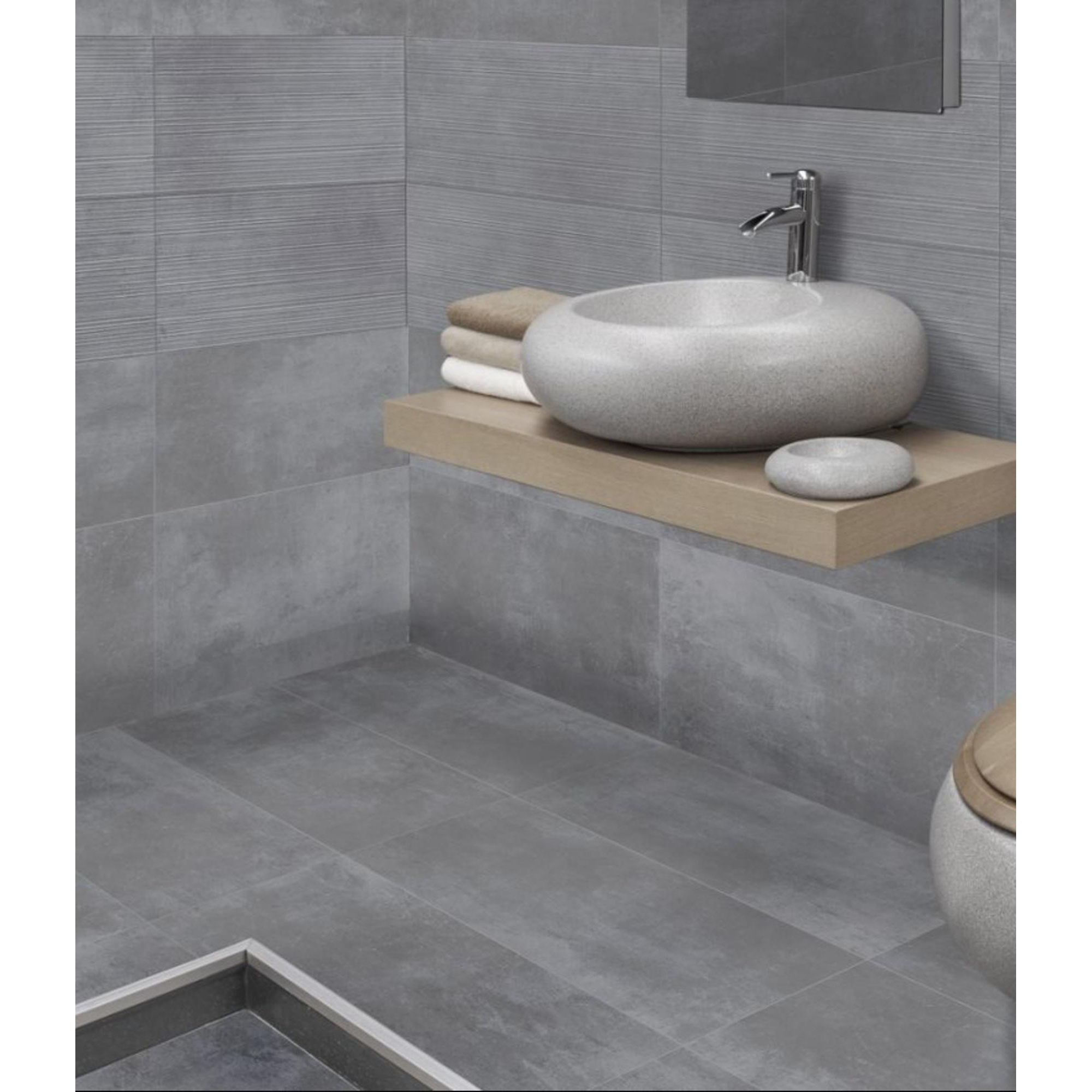 La carrelage murale et de sol EnergieKer est incroyablement polyvalente à utiliser. Que vous souhaitiez habiller les murs de votre salle de bain ou poser un sol épuré dans la cuisine, ce carrelage s'adapte sans effort à chaque espace. L'aspect béton et la couleur Loft Grey sont intemporels et polyvalents, vous permettant de combiner sans fin avec différents styles de décoration.