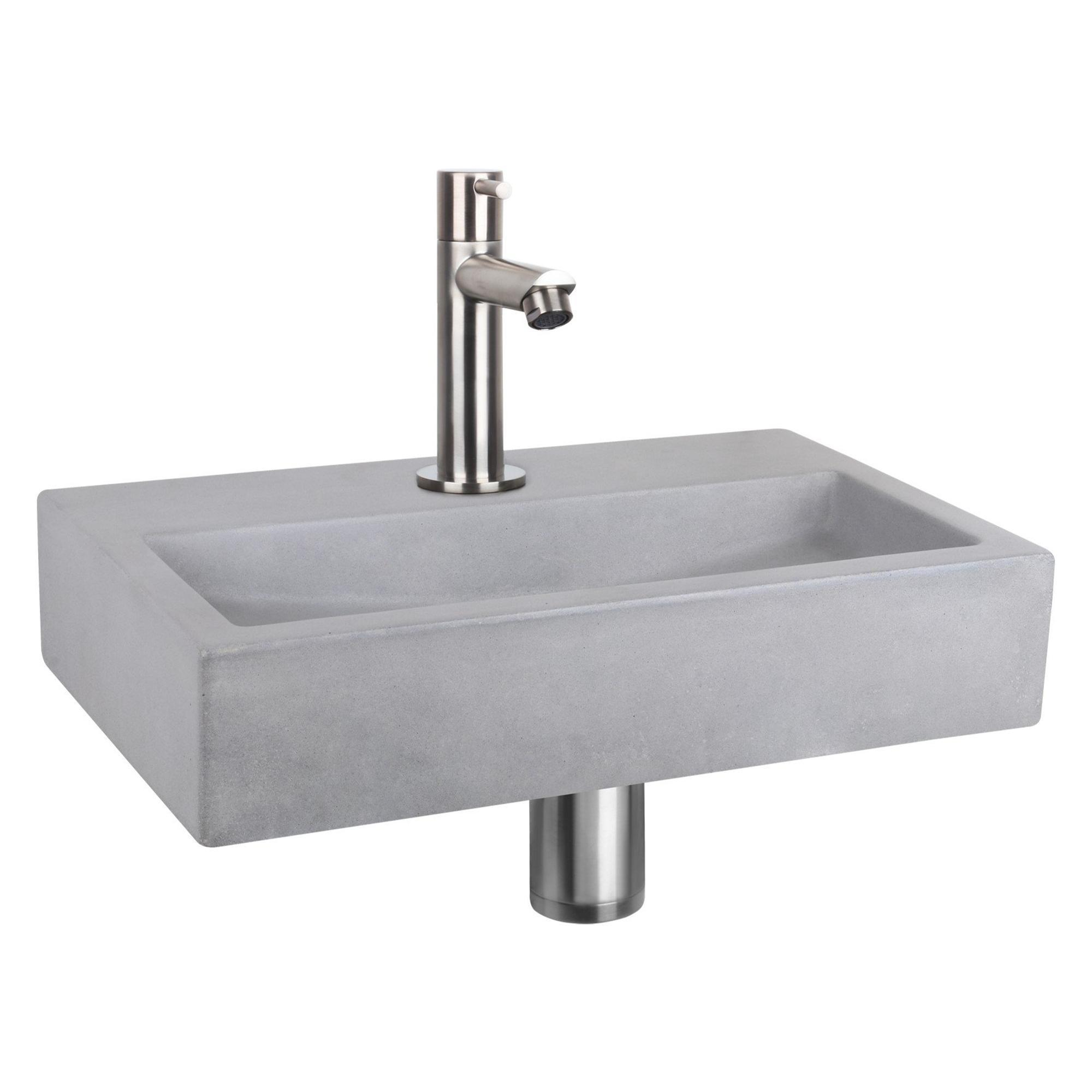 Avec sa couleur gris béton et son design minimaliste, le kit lave-mains Differnz Flat dégage un style indéniable. Le trou de robinet et le robinet droit chromé mat ajoutent une touche d'élégance à l'ensemble. Ce kit de lave-mains est parfait pour ceux qui recherchent un ajout contemporain et stylé à leur salle de bain ou WC.