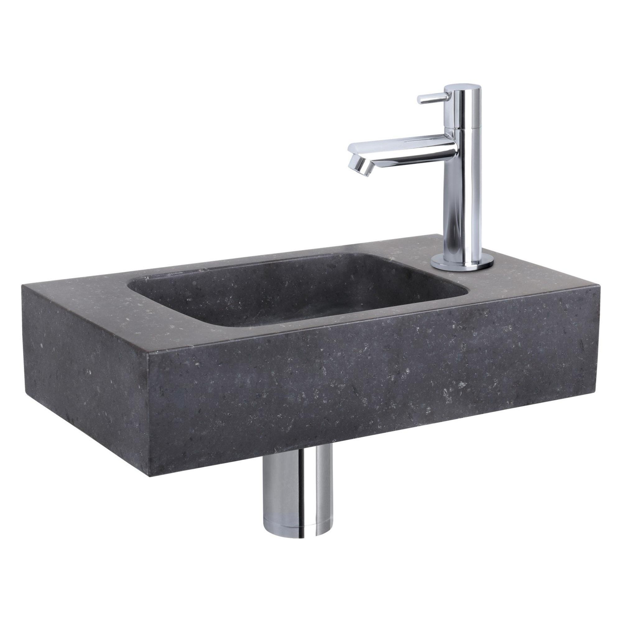 Differnz Force Kit lave-mains - 40x22x9cm - Droit - 1 trou de robinet - Robinet chromé droit - Pierre naturelle noire