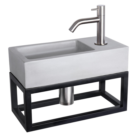 Differnz Ravo Kit lave-mains - 38.5x18.5x25cm - Droit - 1 trou de robinet - Robinet chromé mat incurvé - avec cadre noir - béton gris clair