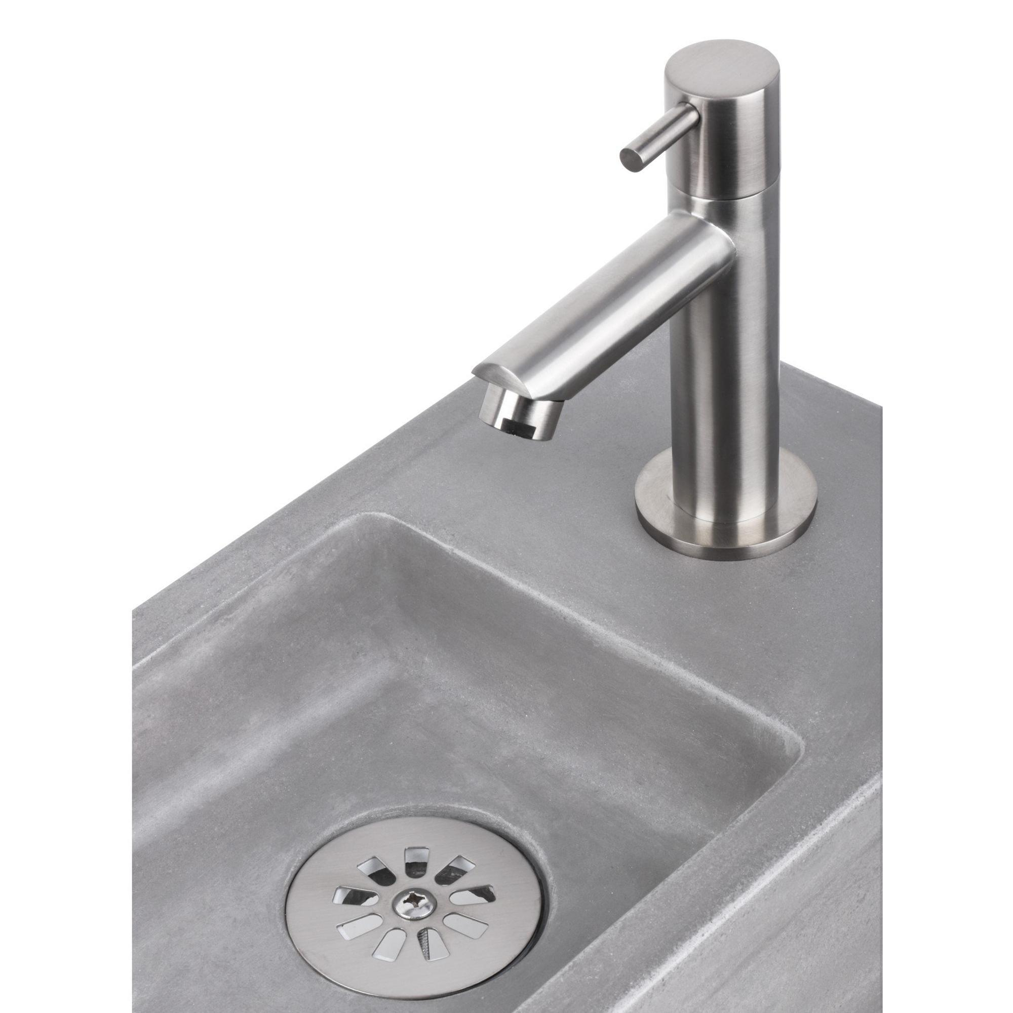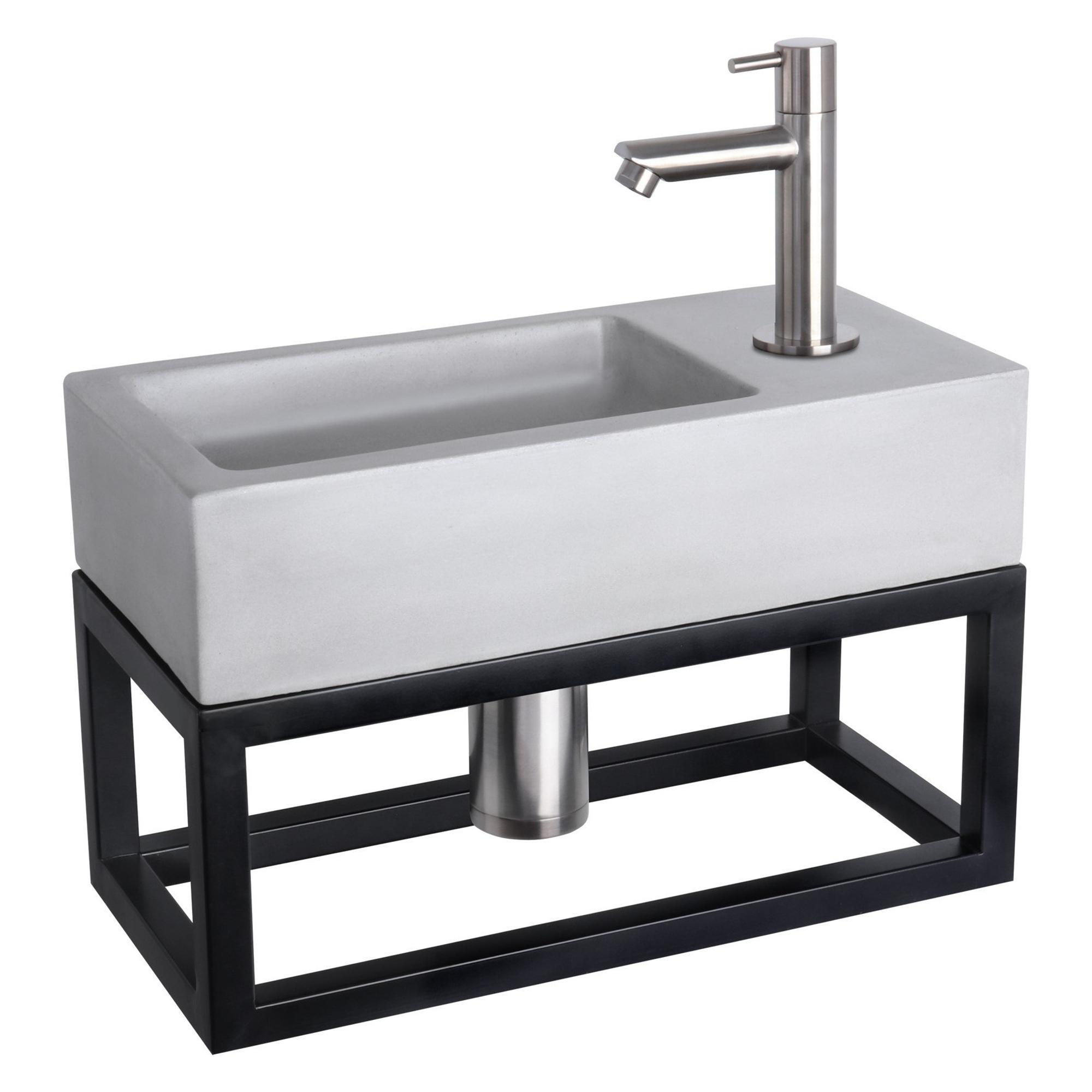 Differnz Ravo Kit lave-mains - 38.5x18.5x25cm - Droit - 1 trou de robinet - Robinet chromé mat droit - avec cadre noir - béton gris clair