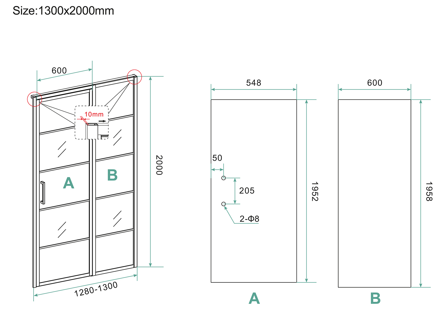 Attention : en combinaison avec une paroi latérale et un kit de raccordement, les dimensions de réglage changent, ce qui rend l'installation sur un receveur de douche incompatible.