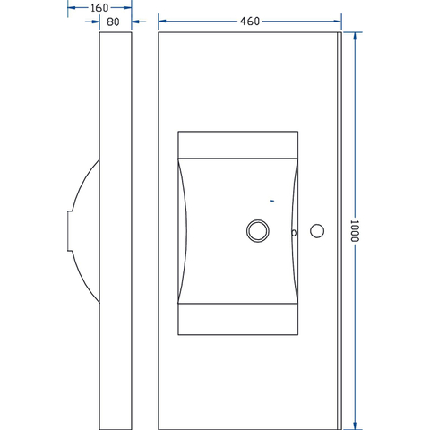 Avec une dimension de 100x46x8 cm, ce lavabo offre un bon équilibre entre confort et gain de place. La largeur vous donne suffisamment de liberté de mouvement pour vous brosser les dents, vous raser ou vous maquiller, tandis que la profondeur relativement réduite de 46 cm permet à l’ensemble de ne pas empiéter trop loin dans la salle de bains. C’est particulièrement pratique dans une salle de bains longue et étroite ou lorsque l’espace de passage devant le meuble est limité. La hauteur de 8 cm assure un profil fin et moderne qui repose avec élégance sur le meuble, sans paraître massif. Grâce au trou unique pour le robinet, vous pouvez facilement installer un joli mitigeur monocommande, avec lequel vous créez une apparence sobre et symétrique.