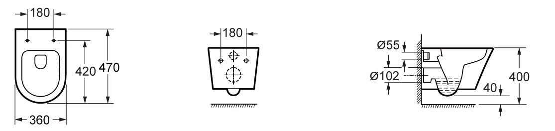 - Cuvette suspendue raccourcie d'environ 47 cm de profondeur, idéale pour les petites toilettes et les salles de bains compactes.