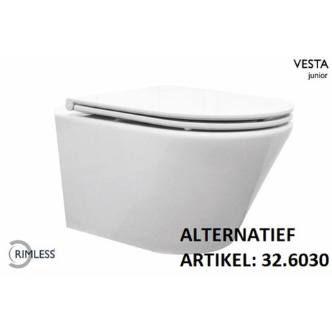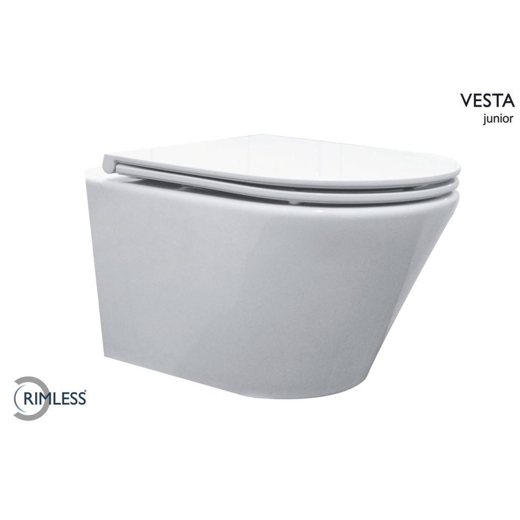 Wiesbaden Vesta junior cuvette suspendue rimless raccourcie avec abattant Flatline softclose et déclipsage rapide blanc brillant