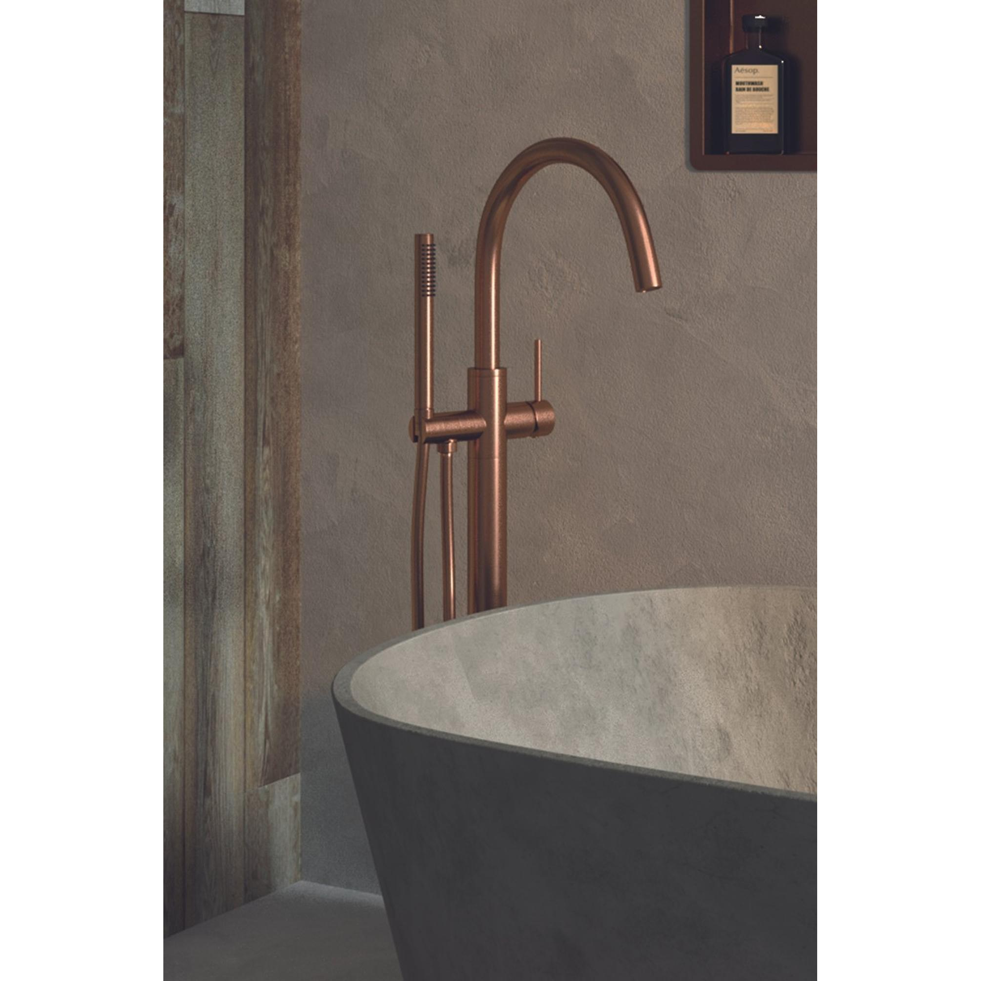 Brauer Copper Edition Mitigeur de bain sur pied - douchette à main barre 1 position - 2 boutons lisses - PVD - cuivre brossé Brauer Copper Edition Mitigeur de bain sur pied douchette a main barre 1 position 2 boutons lisses PVD cuivre brosse