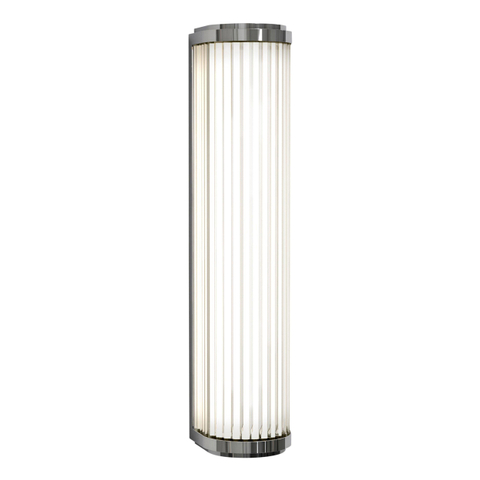 La combinaison de chrome haute brillance et d’un abat-jour composé de tiges de verre verticales offre une apparence résolument chic que l’on retrouve habituellement dans les hôtels de luxe. Le format élancé de 37 x 8 x 8 cm rend le luminaire idéal pour être placé symétriquement de part et d’autre d’un miroir, ou au contraire en lampe solitaire pour mettre en valeur une niche ou un pan de mur. Grâce au chrome, la lampe s’accorde élégamment avec de nombreux accessoires de salle de bains et robinets dans la même finition, ce qui vous permet de créer facilement un ensemble harmonieux et cohérent. La forme arrondie donne une impression douce et raffinée, de sorte que cet éclairage ne devient pas vite trop présent, même dans les petites salles de bains, mais constitue justement un élément de décoration élégant.