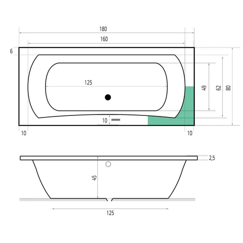 - Baignoire duo spacieuse de 180x80x48 cm, idéale pour prendre un bain confortablement à deux.